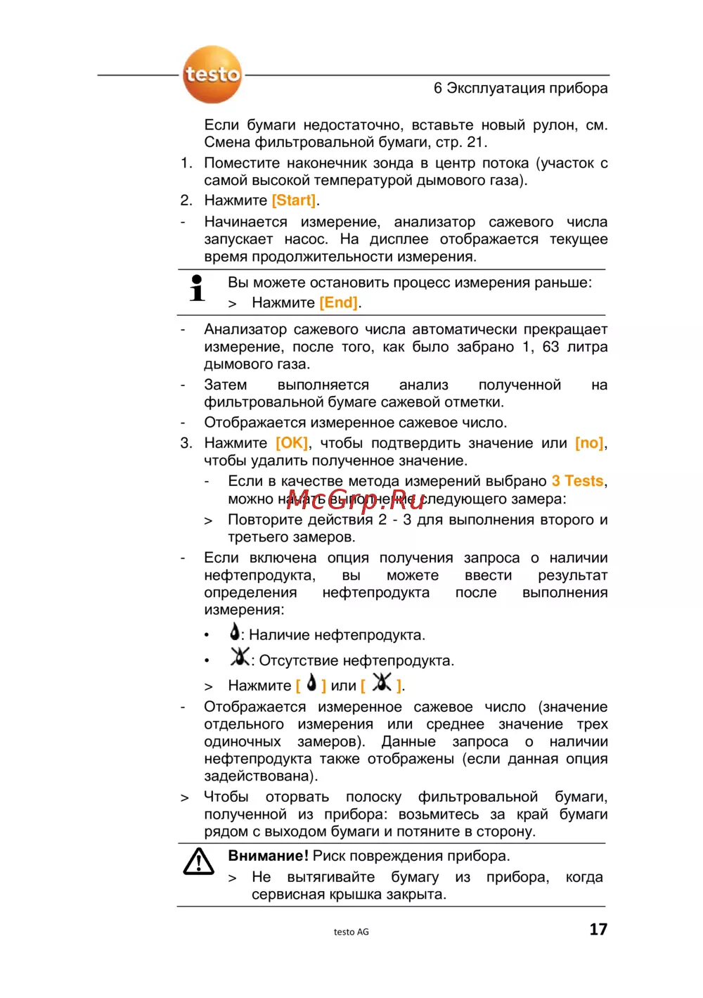 Testo 308 — инструкция по эксплуатации анализатора сажевого числа [17/27]