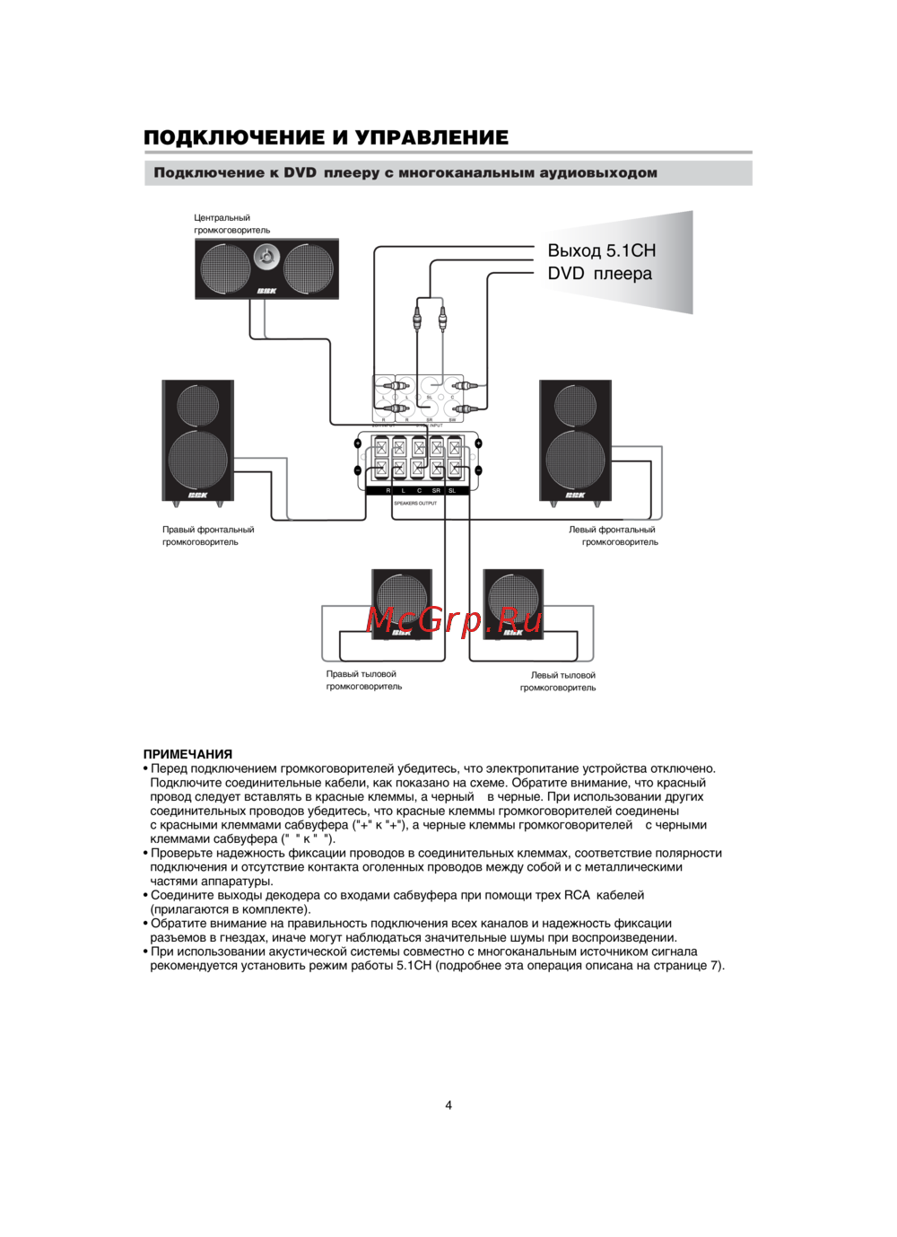 - Подключение к dvd плееру с многоканальным аудиовыходом p.7