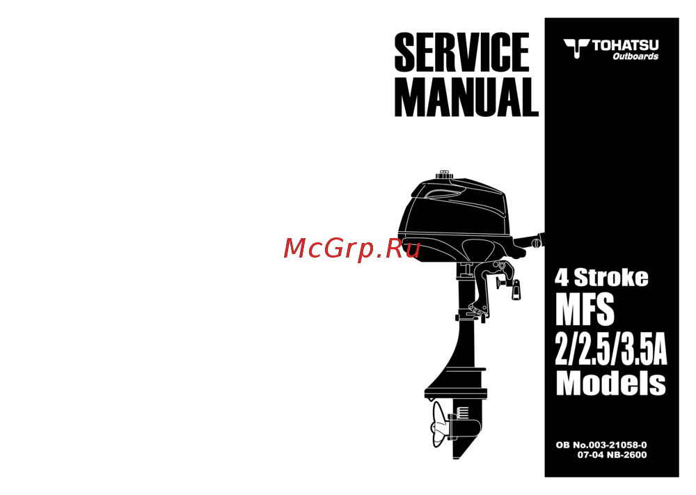 Tohatsu MFS 2.5 A2 S Сервис Мануал онлайн