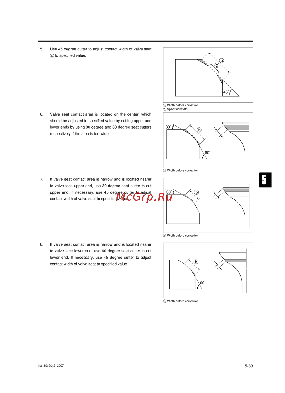 5. Use 45 degree cutter to adjust contact width of valve seat