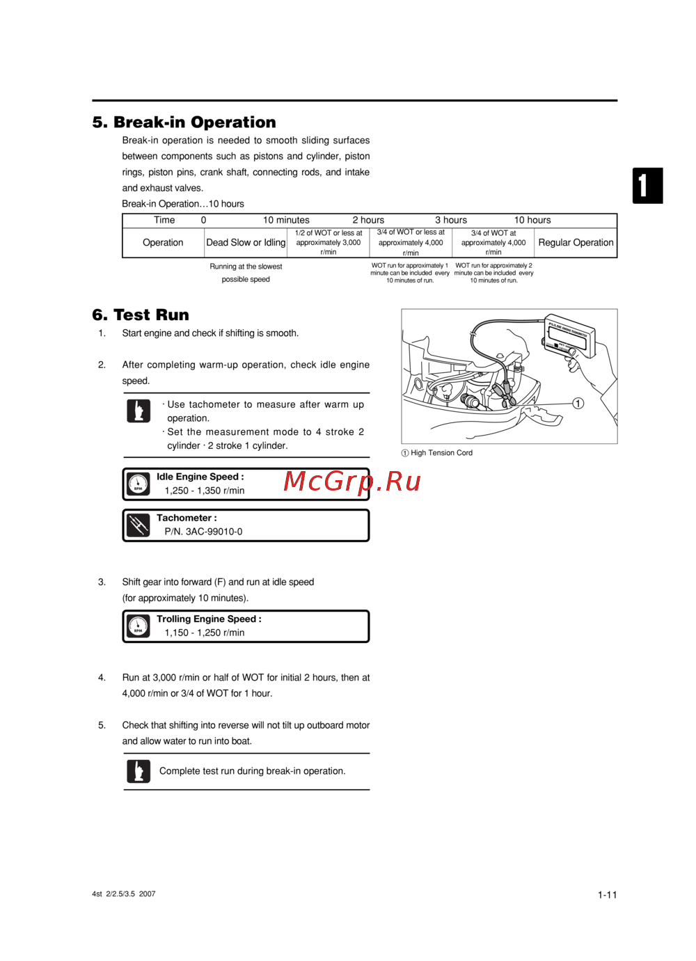 Tohatsu MFS 2.5 A2 S — руководство по тестированию и обкатке лодочного мотора [18/165]