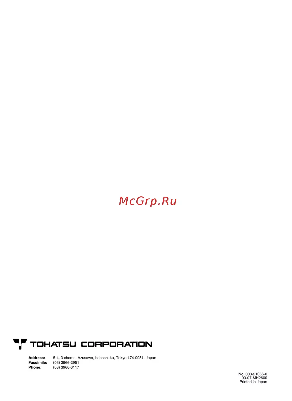 TOMATSU CORPORATION Address Facsimile Phone 5 4 3 chome Azusawa ltabashi ku Tokyo 174 0051 Japan 03 3966 2951 03 3966 3117 No 003 21056 0 03 07 MH2600 Printed in Japan