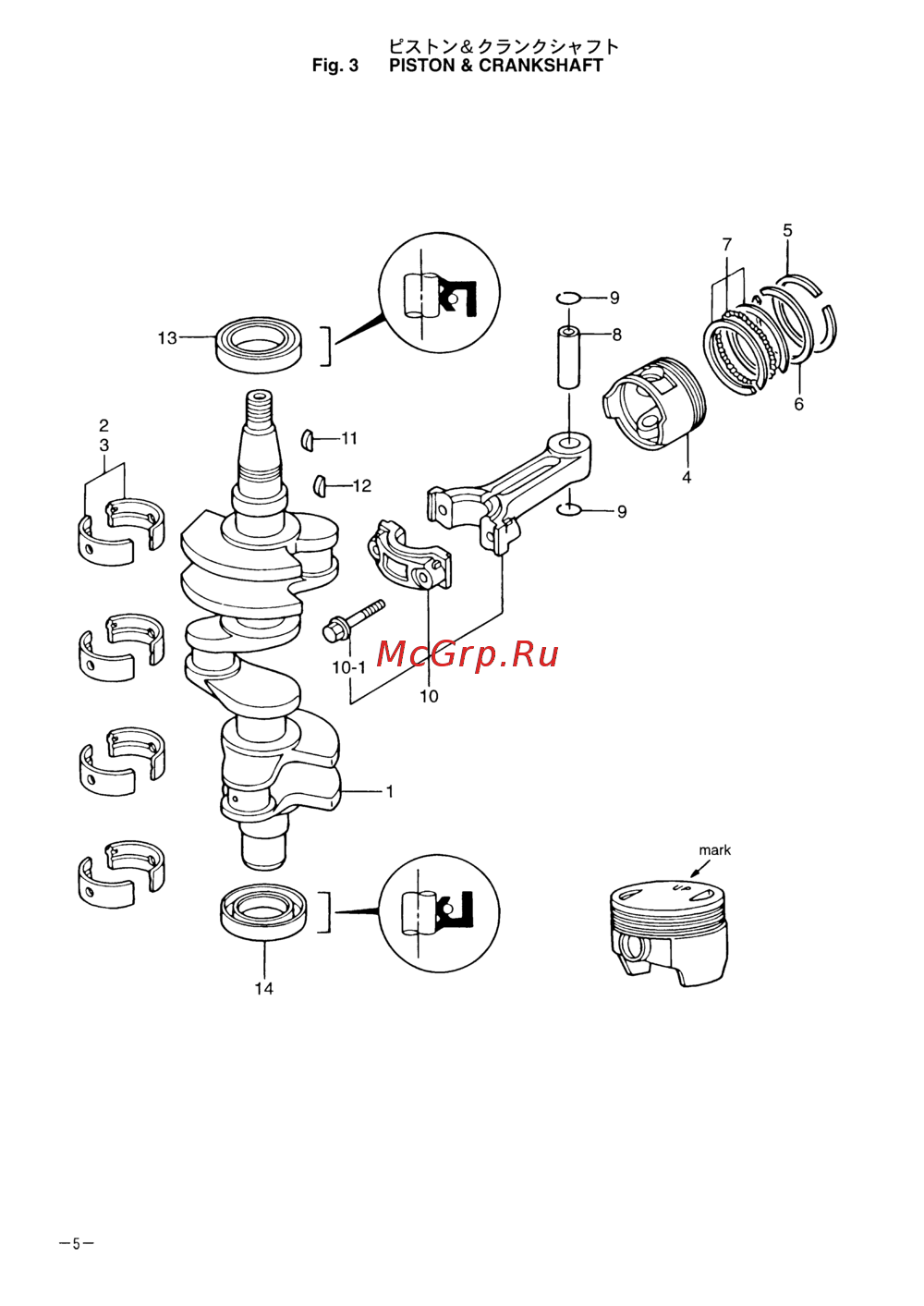Tohatsu MFS 25 [9/90] Fig 3 piston crankshaft