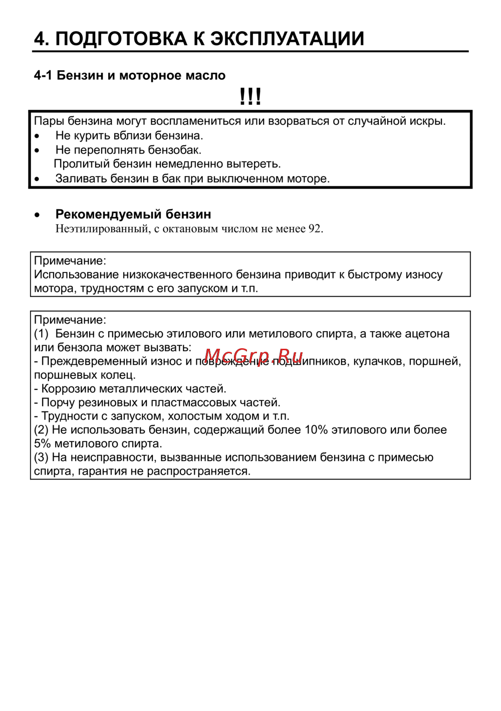 (2) Не использовать бензин, содержащий более 10% этилового или более