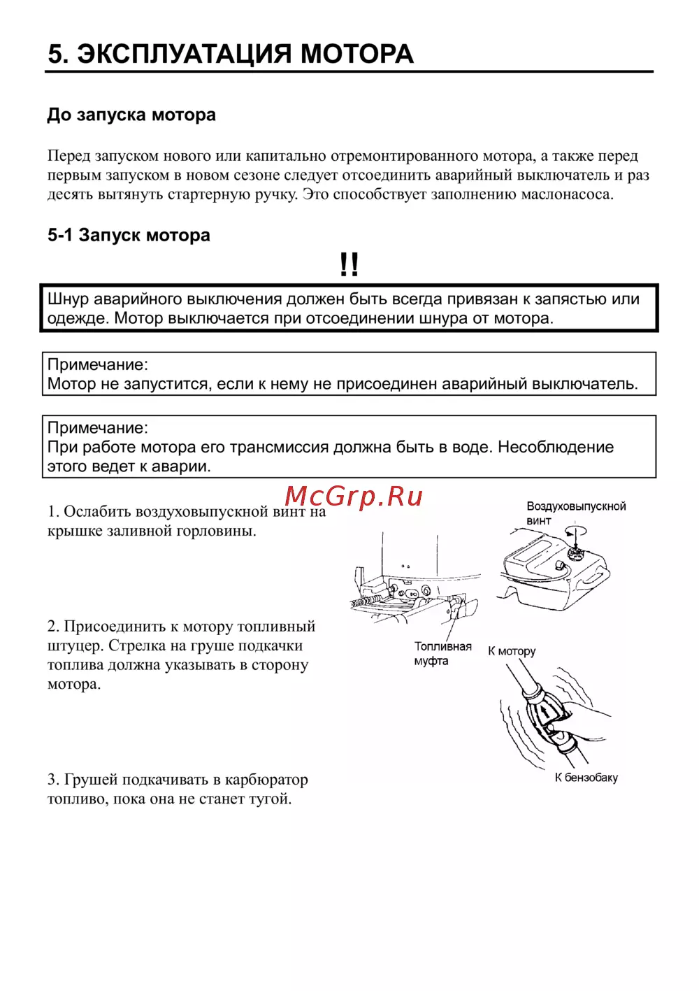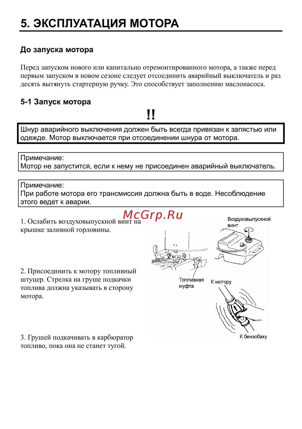 - Подготовка к эксплуатации мотора p.4