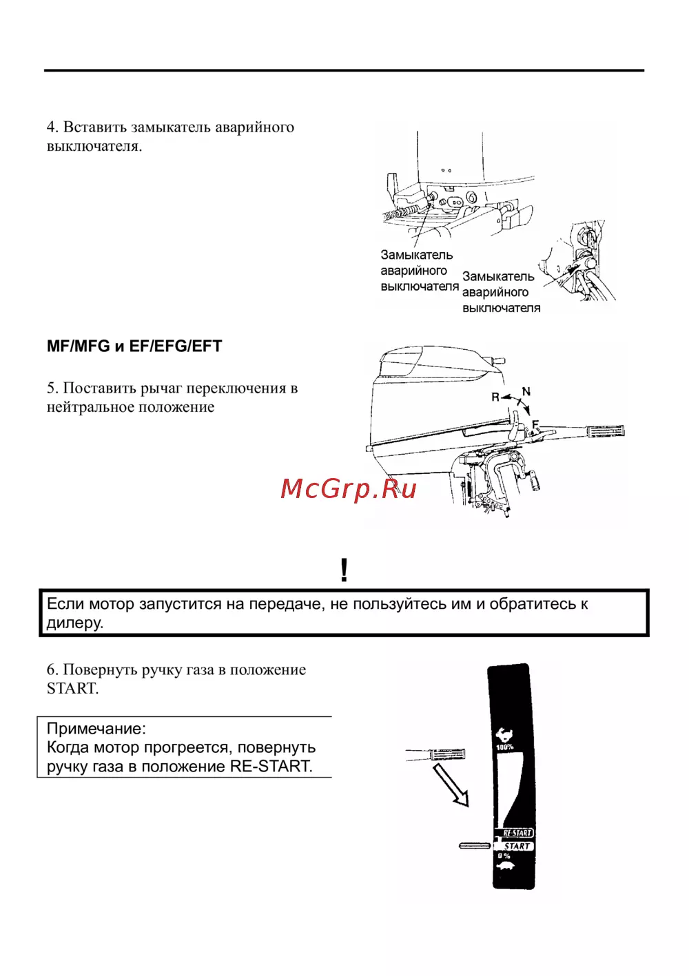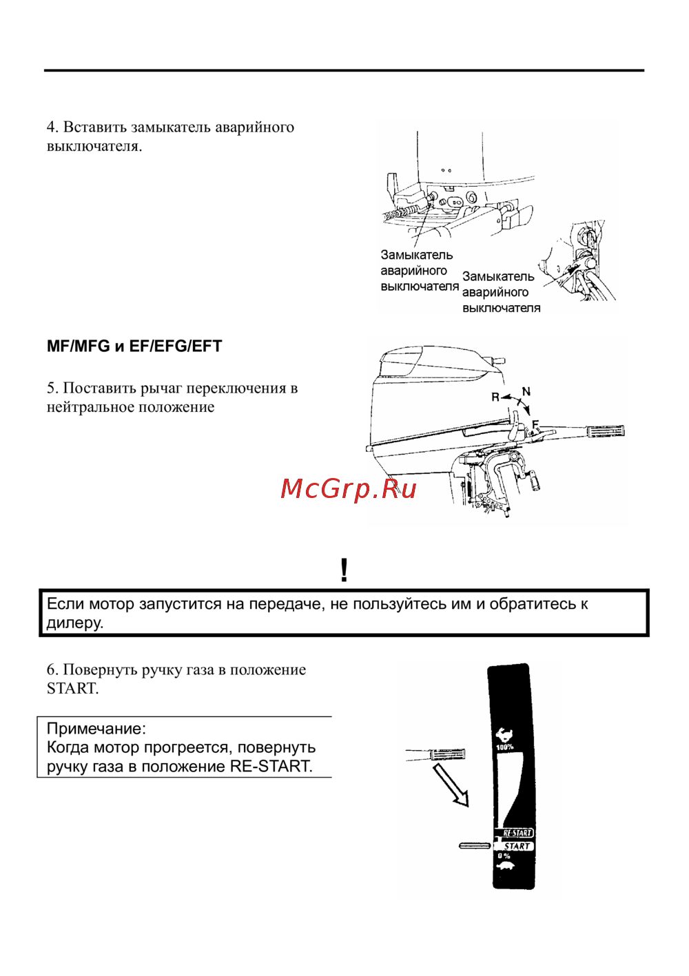 Если мотор запустится на передаче, не пользуйтесь им и обратитесь к
