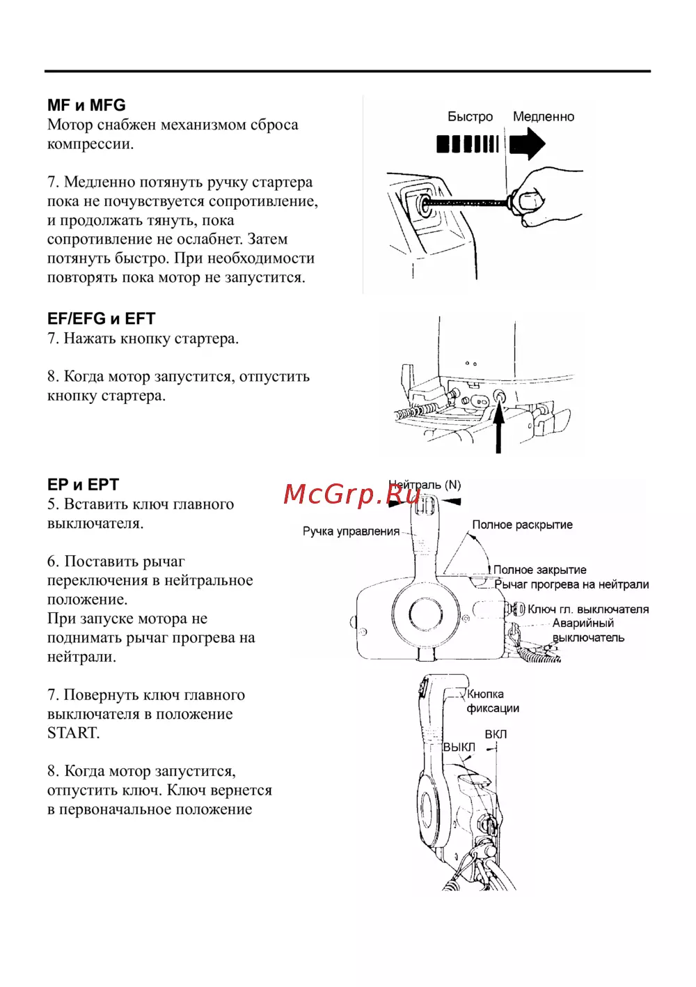 Tohatsu MFS 30 — инструкции по запуску моторов с механизмом сброса компрессии [23/69]
