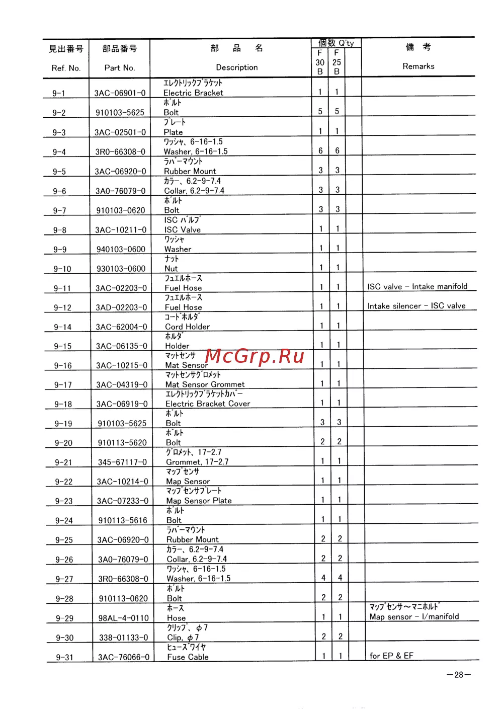 Tohatsu MFS 25Каталог запчастей -