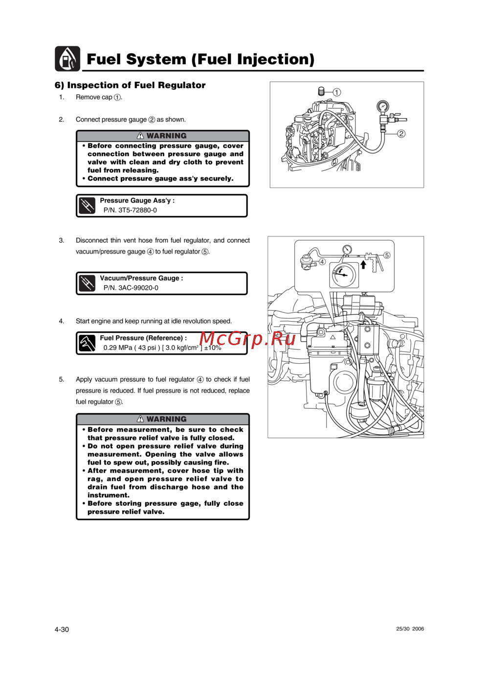 Tohatsu MFS 30 — инструкция по проверке топливного регулятора и давления [112/319]