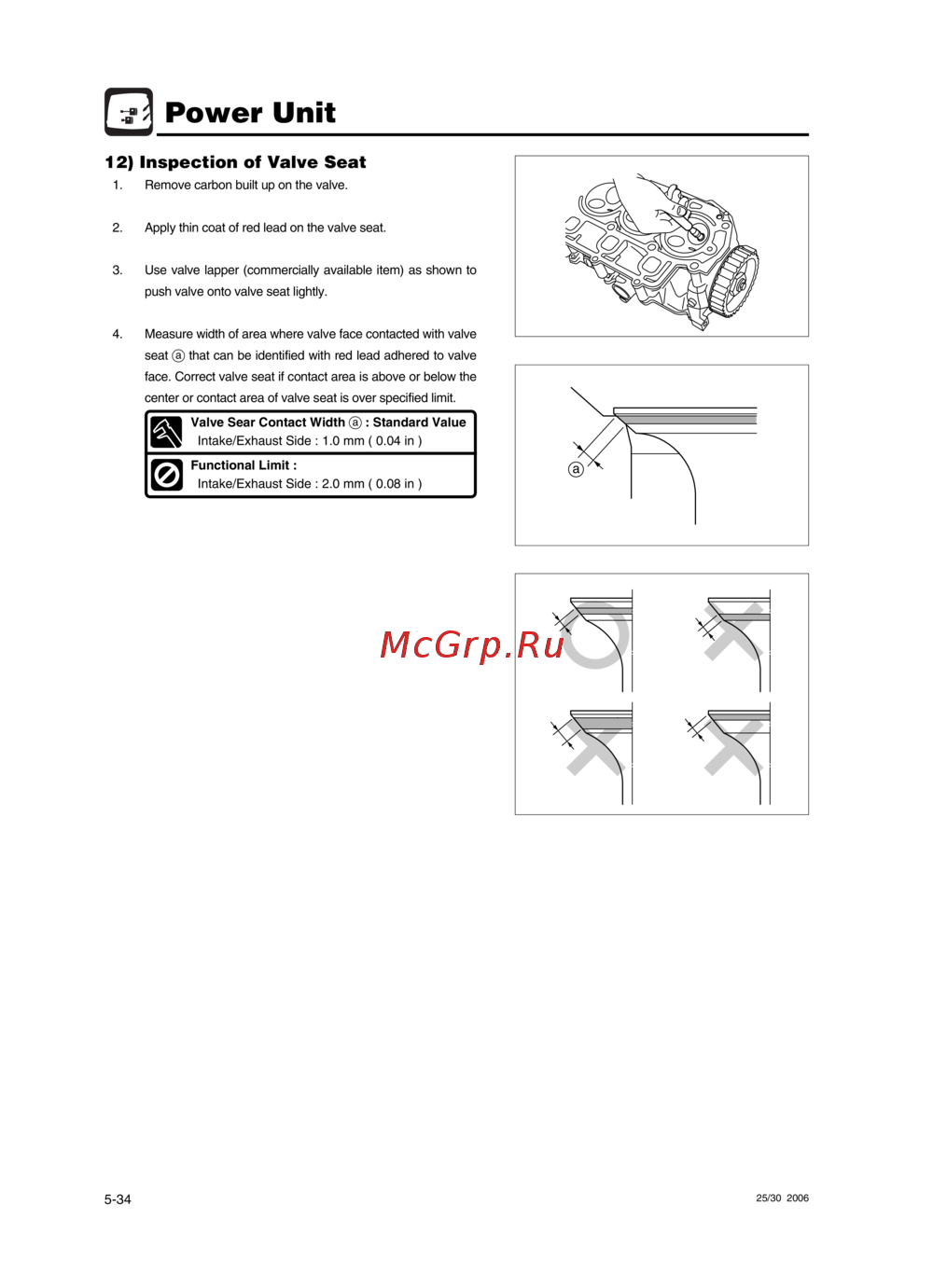 Tohatsu MFS 30 — инструкция по проверке седла клапана для силового агрегата [150/319]