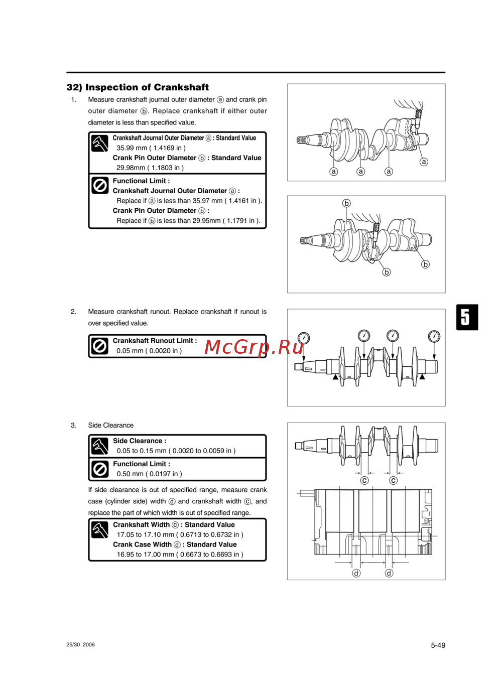 Tohatsu MFS 30 — инструкция по проверке коленчатого вала: измерения и замены [165/319]