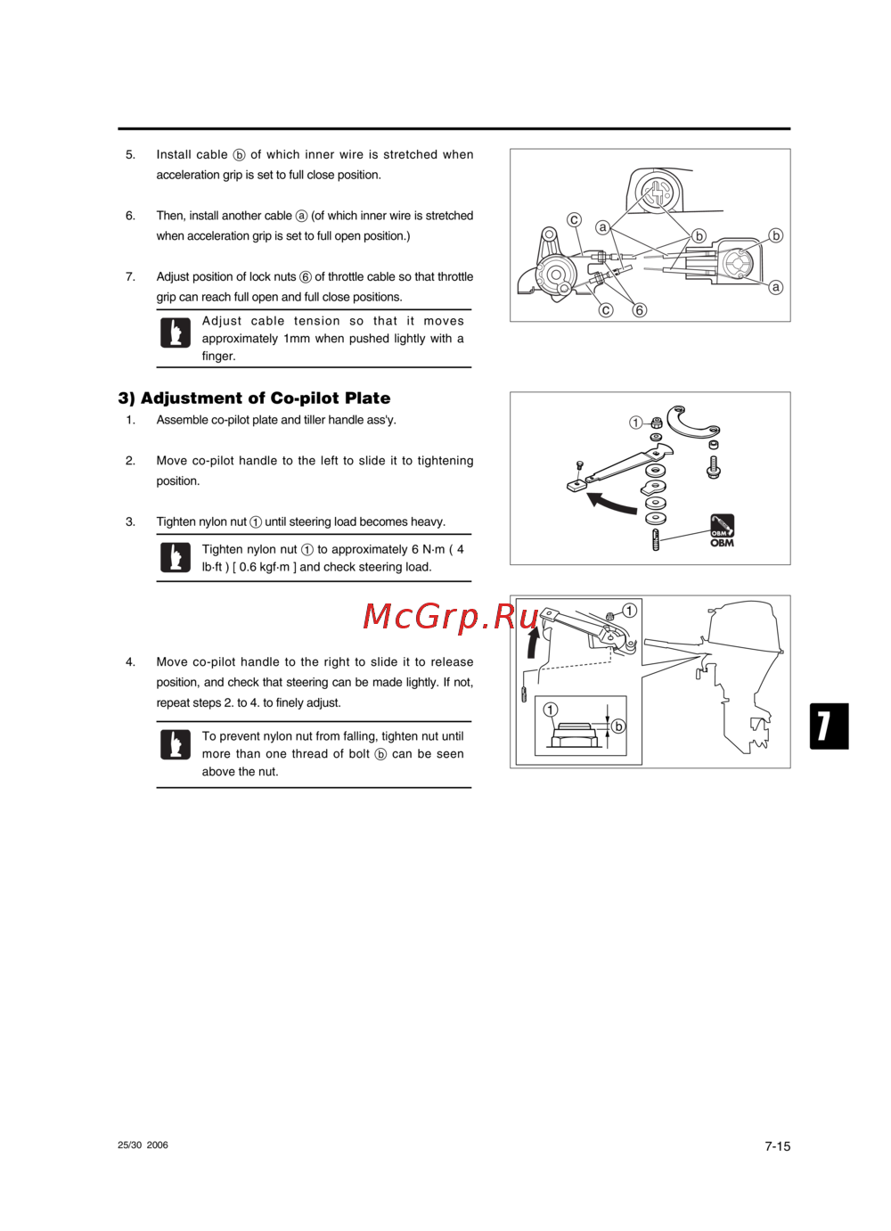 Tohatsu MFS 30 — инструкция по регулировке плиты сопилота и тросов управления [225/319]