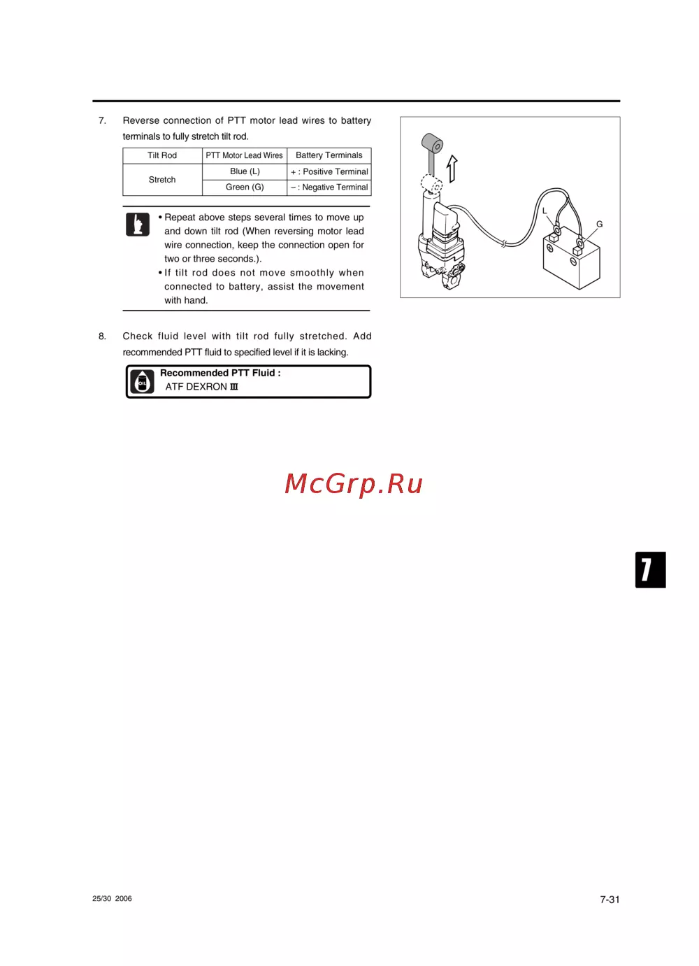Tohatsu MFS 30 — troubleshooting PTT Motor Issues: Connection, Fluid Level & Movement [241/319]