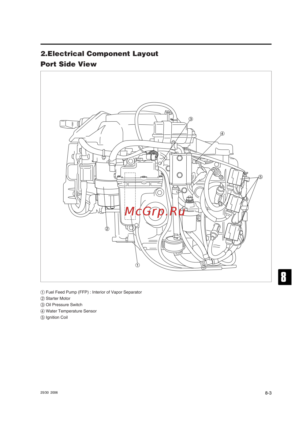 Tohatsu MFS 30 [249/319] Electrical component layout port side view