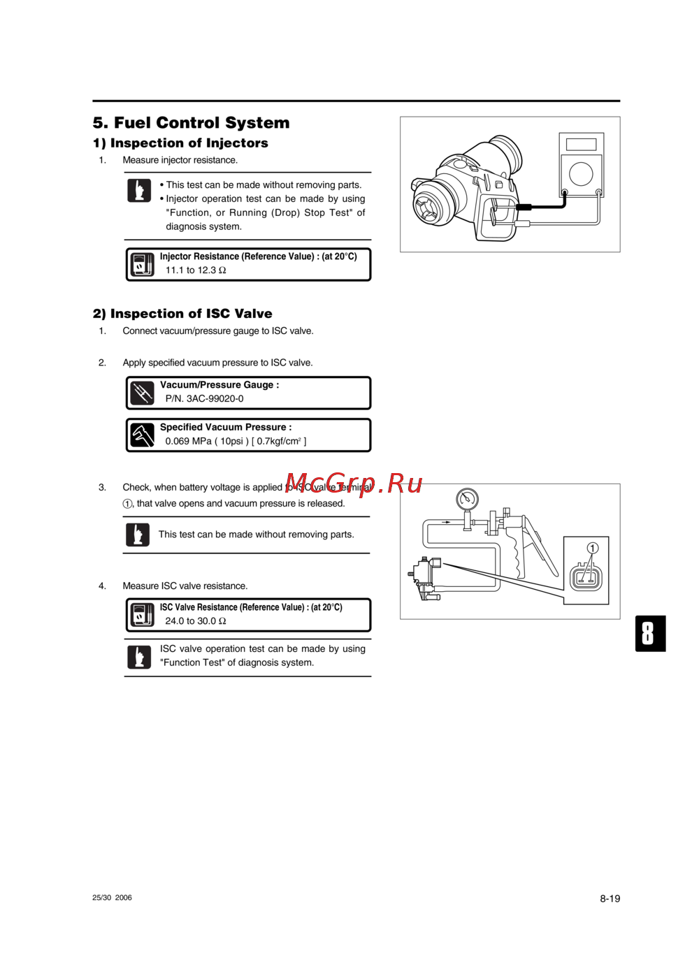 Tohatsu MFS 30 — инструкция по проверке системы управления топливом и клапана ISC [265/319]
