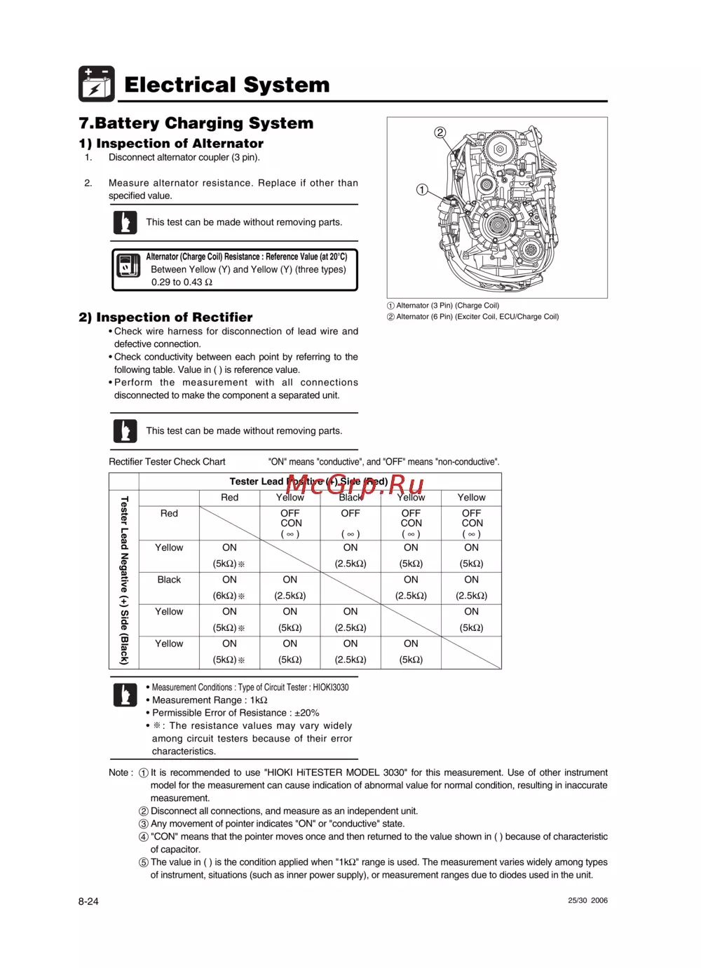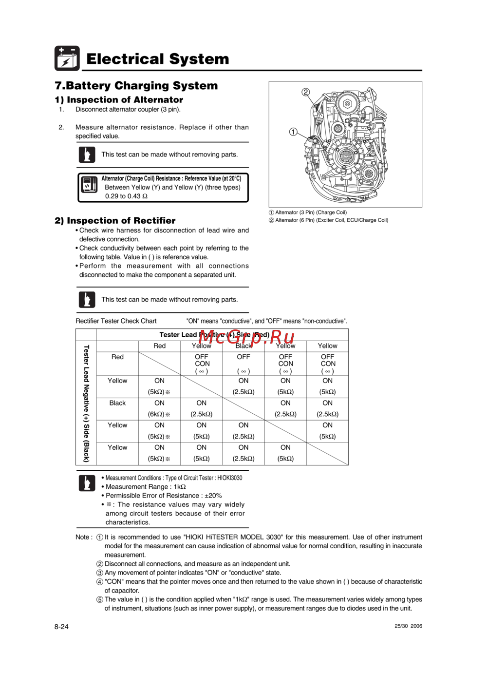 Tohatsu MFS 30 — проверка электрической системы: альтернатор и выпрямитель [270/319]