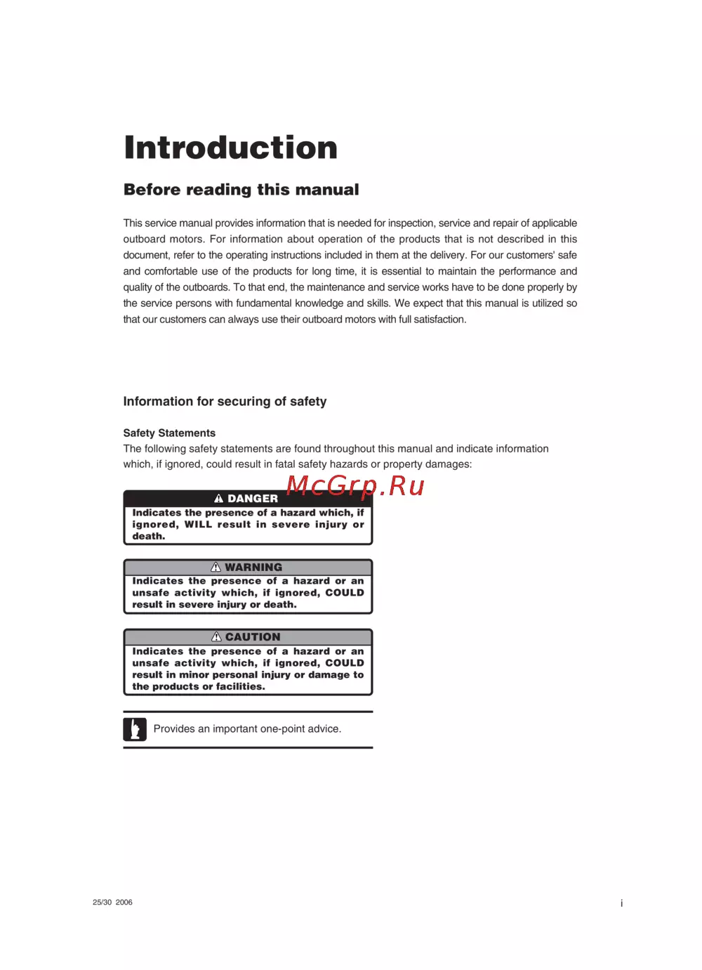 Tohatsu MFS 30 — руководство по обслуживанию и ремонту подвесных моторов [3/319]