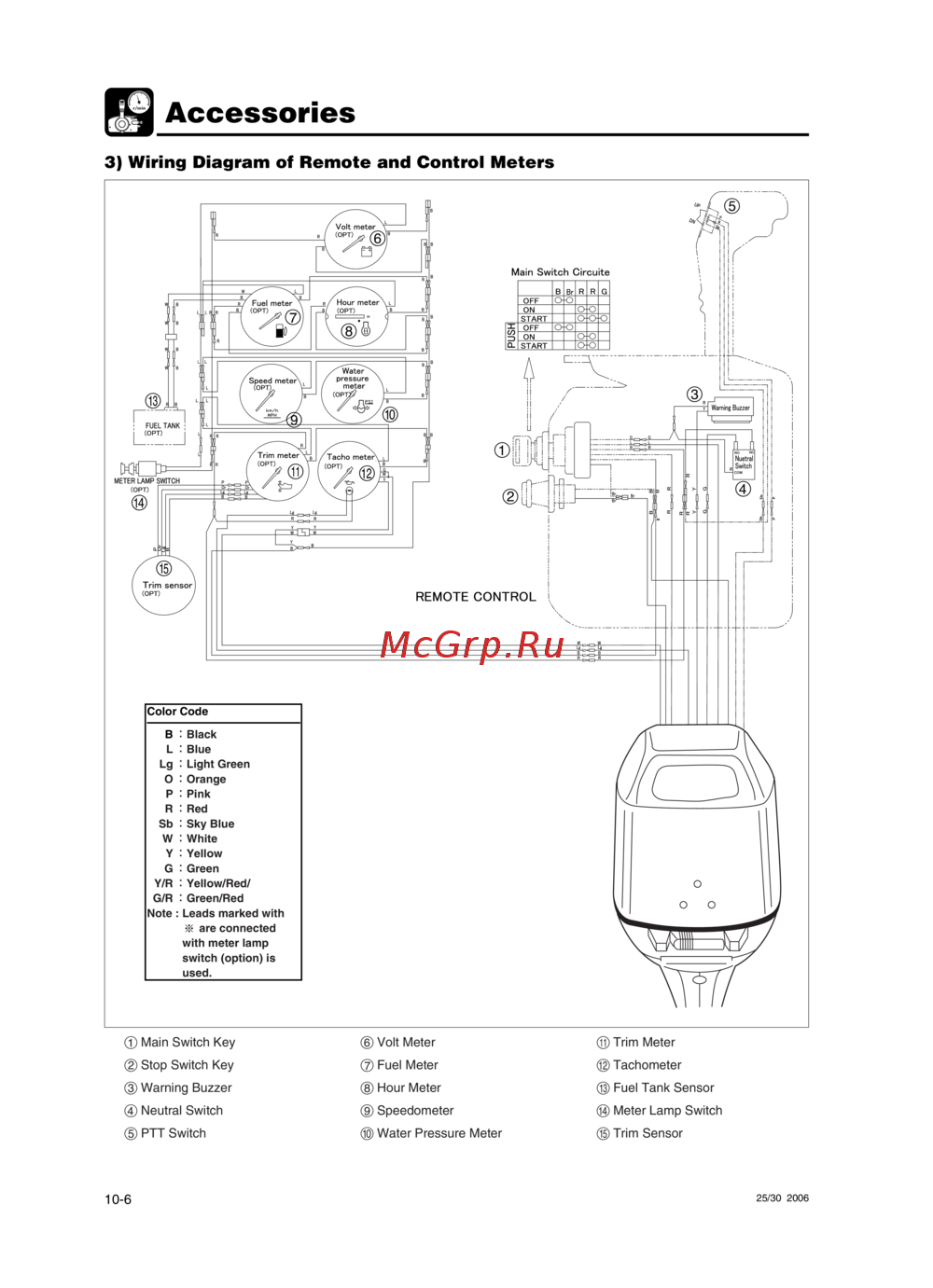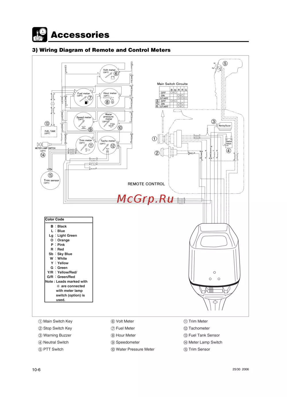 Tohatsu MFS 30 [310/319] Wiring diagram of remote and control meters