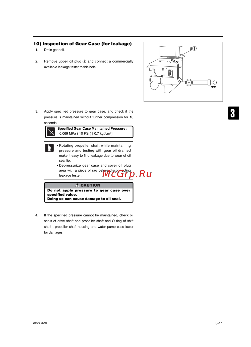 Tohatsu MFS 30 — проверка герметичности и давления в редукторе [59/319]