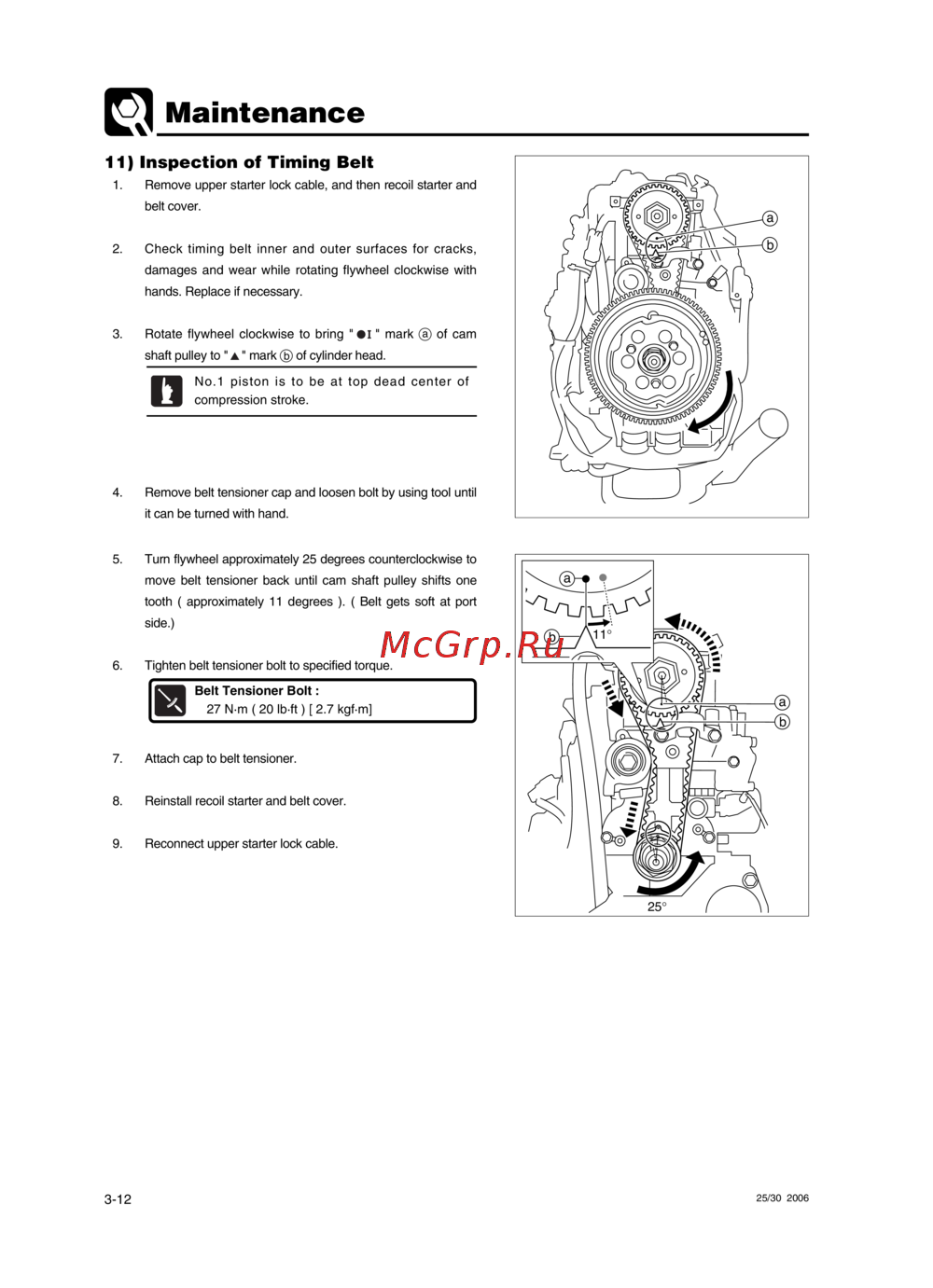 Tohatsu MFS 30 — инструкция по обслуживанию: Проверка и замена ремня ГРМ [60/319]
