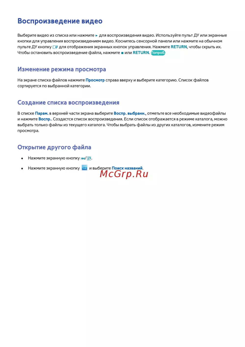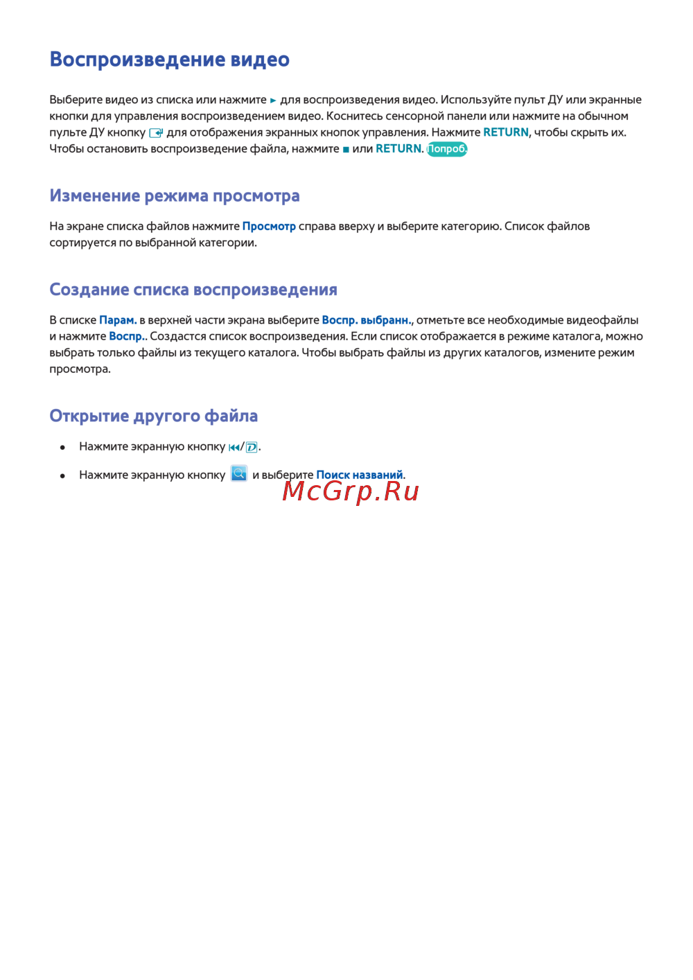 для воспроизведения видео. Используйте пульт ДУ или экранные