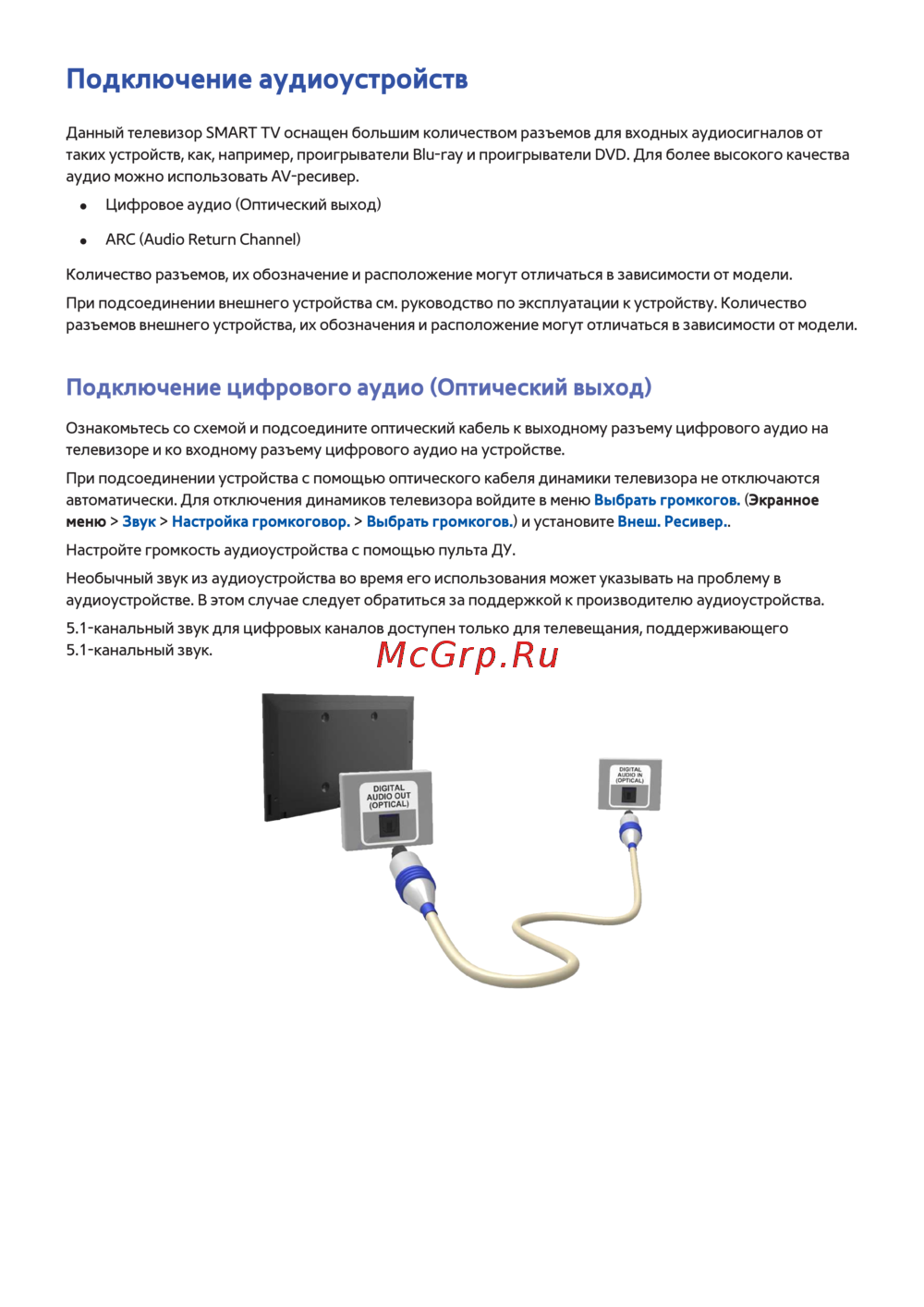 телевизоре и ко входному разъему цифрового аудио на устройстве.