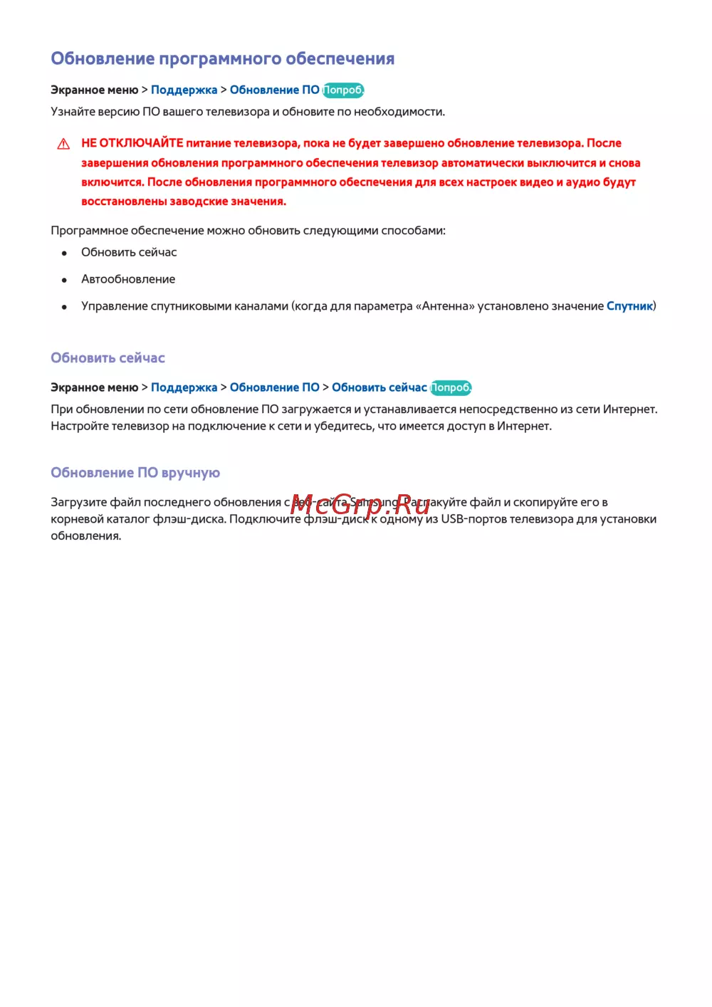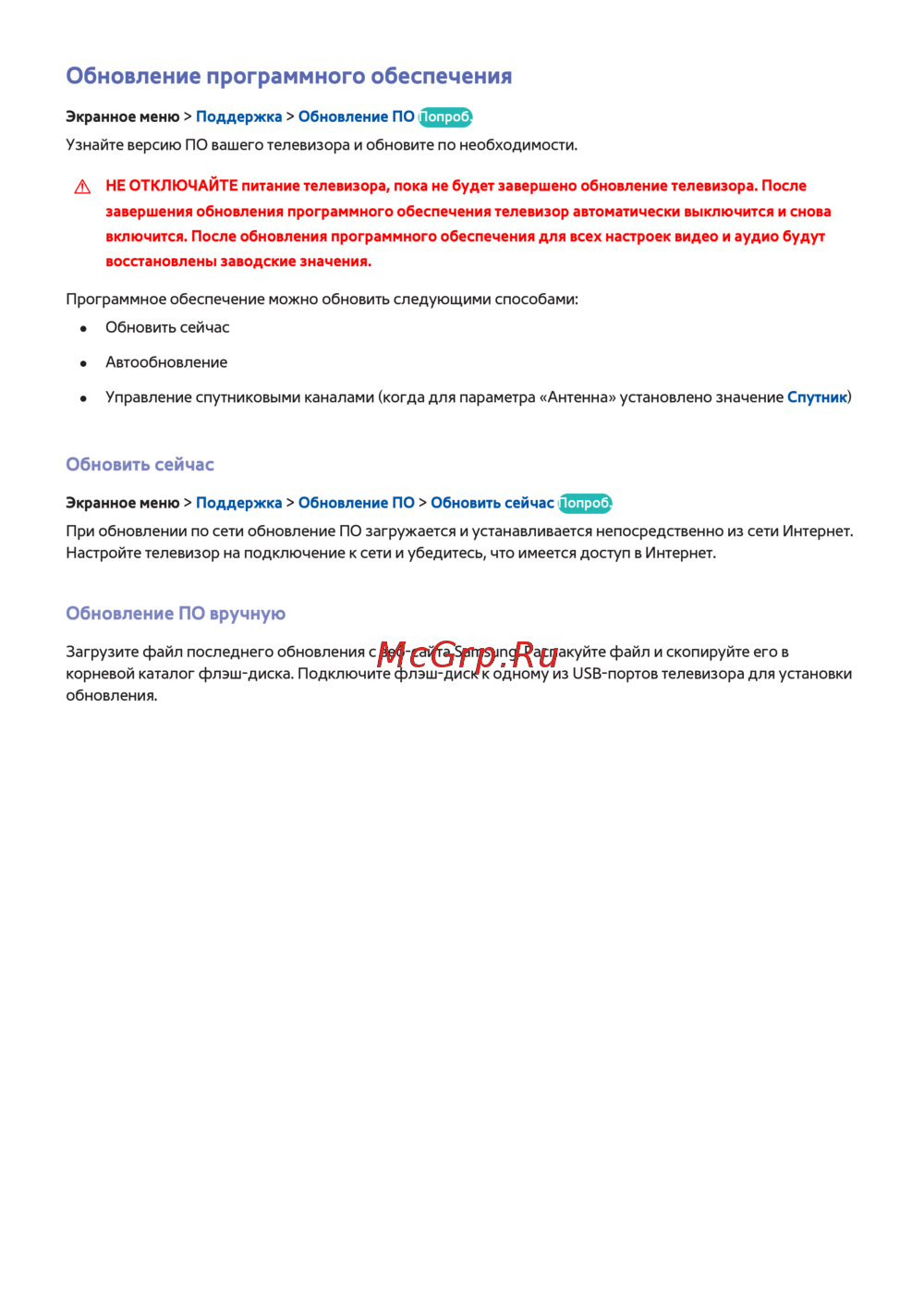 завершения обновления программного обеспечения телевизор автоматически выключится и снова