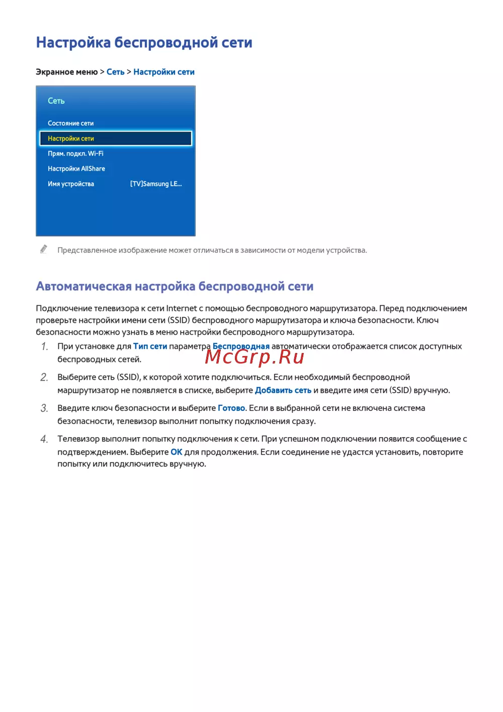 Samsung UE40F6400AK — настройка беспроводной сети на телевизоре: пошаговое руководство [41/194]