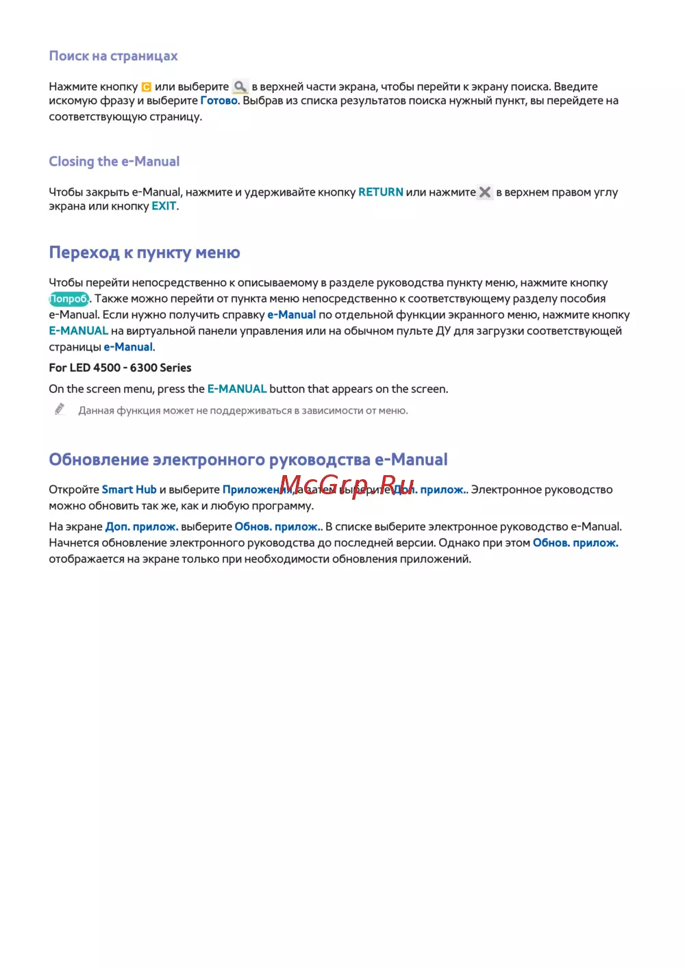 Узнайте, как эффективно использовать электронное руководство e-Manual. Пошаговые инструкции по поиску, закрытию и обновлению руководства для удобства пользователей.