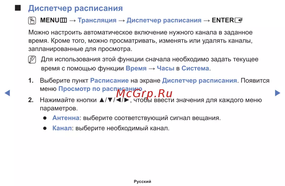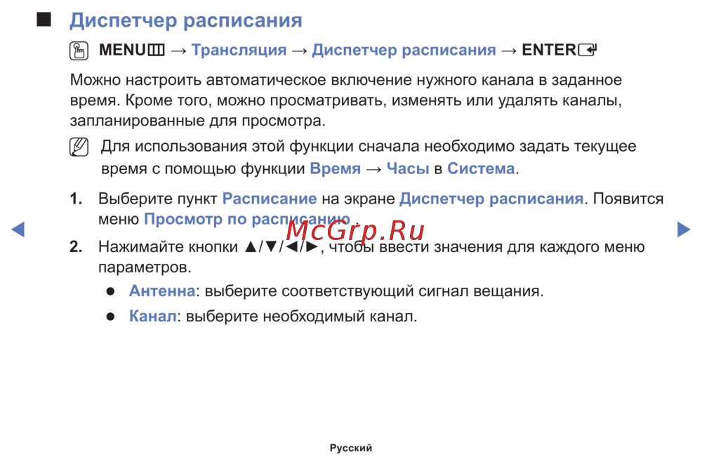 Узнайте, как настроить диспетчер расписания для автоматического включения каналов в заданное время. Просматривайте, изменяйте и удаляйте запланированные каналы.