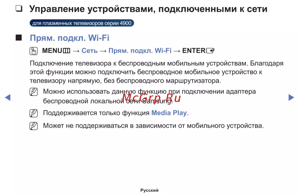 Узнайте, как подключить мобильные устройства к телевизору напрямую через Wi-Fi. Простое управление и поддержка Media Play для удобства использования.