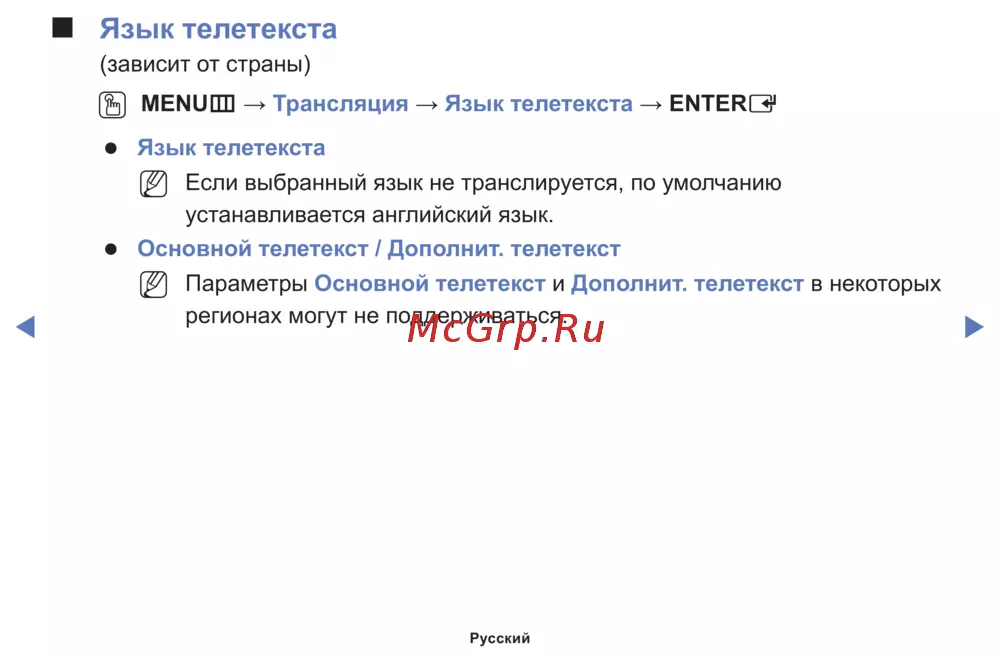Параметры Основнойтелетекст и Дополнит.телетекст в некоторых