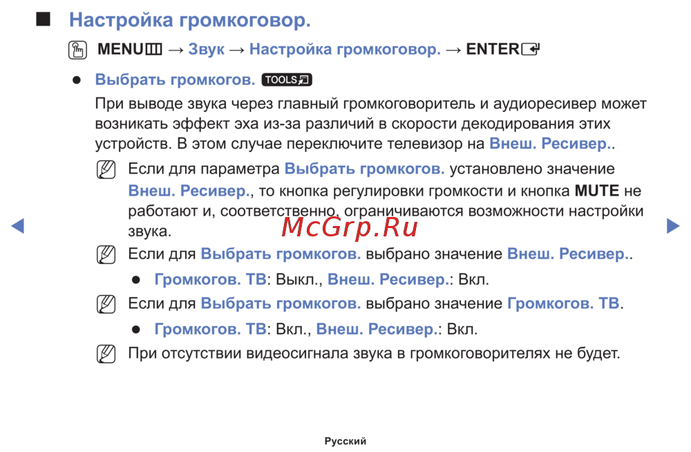 Громкогов.ТВ: Выкл., Внеш.Ресивер.: Вкл.