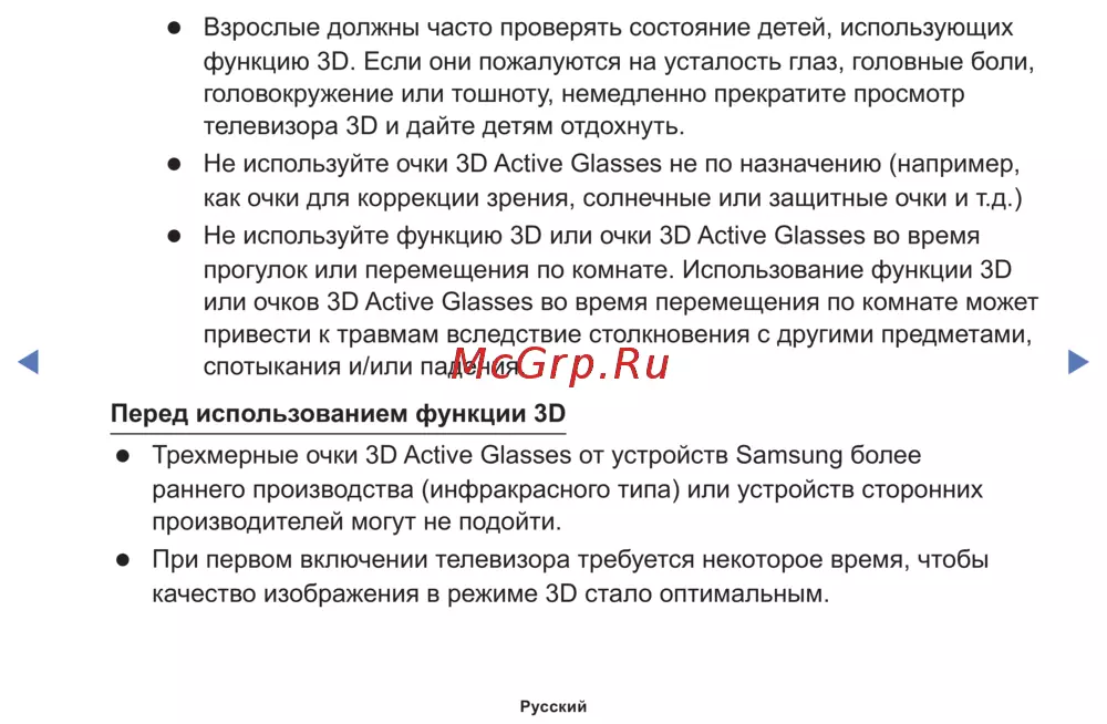Samsung UE32F6100AK — рекомендации по безопасному использованию 3D технологий для детей [98/151]