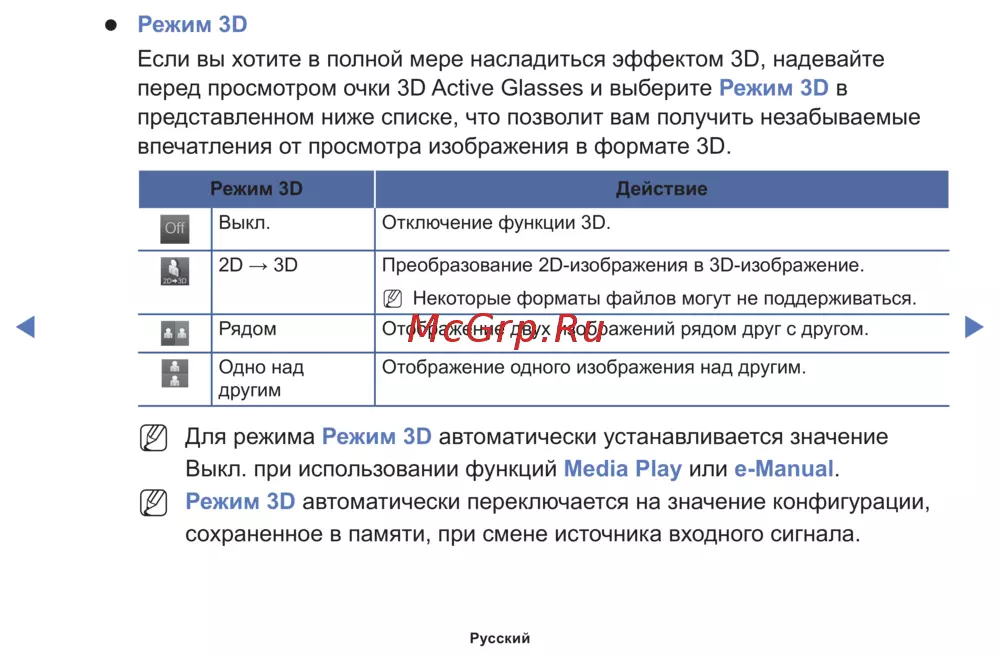 - Эта функция отключена если для режима 3d задано значение p.102