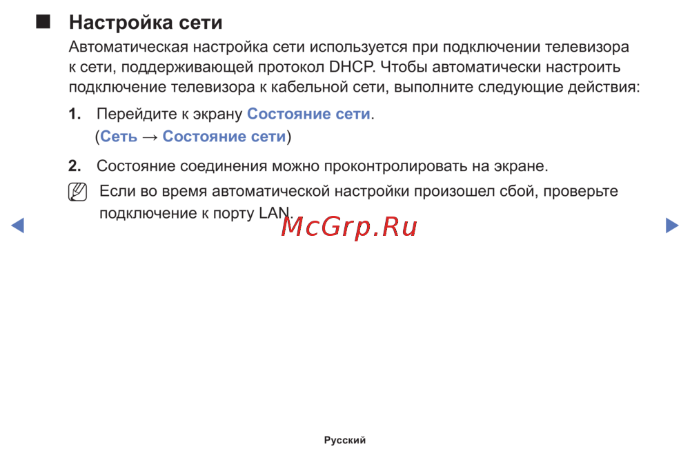 - При возникновении сбоя подключения к проводной сети используйте следующую информацию p.137