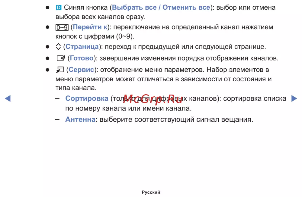 - Использование меню каналов p.8