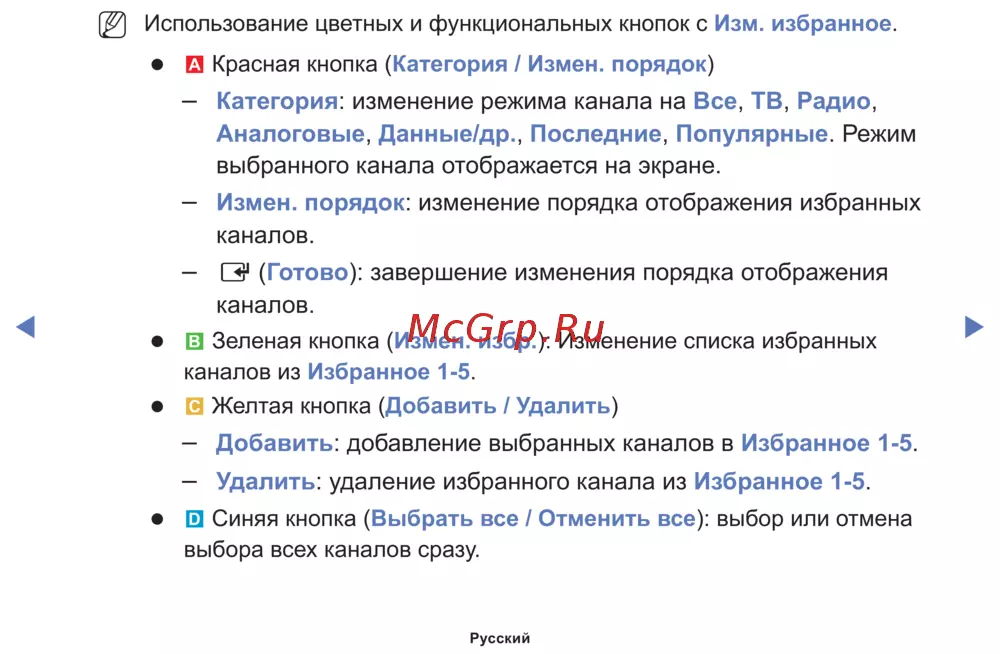 Добавить: добавление выбранных каналов в Избранное1-5.