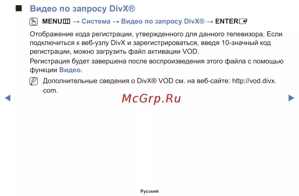 Дополнительные сведения о DivX® VOD см. на веб-сайте: http://vod.divx.