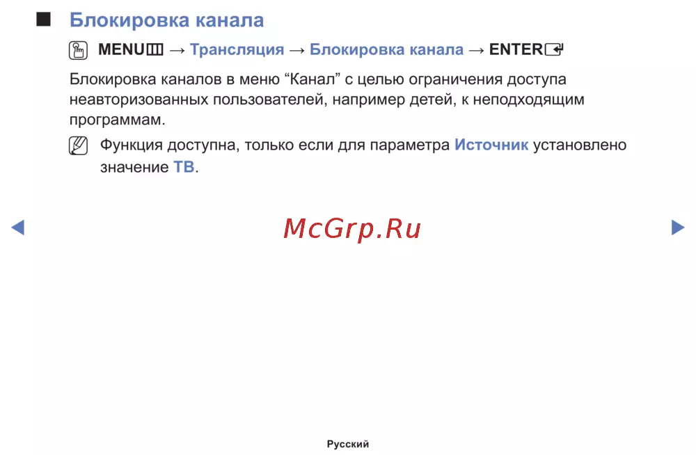 Блокировка каналов в меню “Канал” с целью ограничения доступа