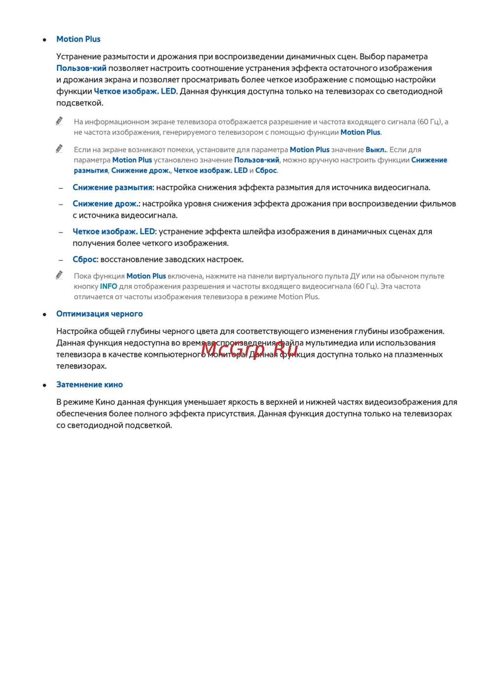 Если на экране возникают помехи, установите для параметра Motion Plus значение Выкл.. Если для