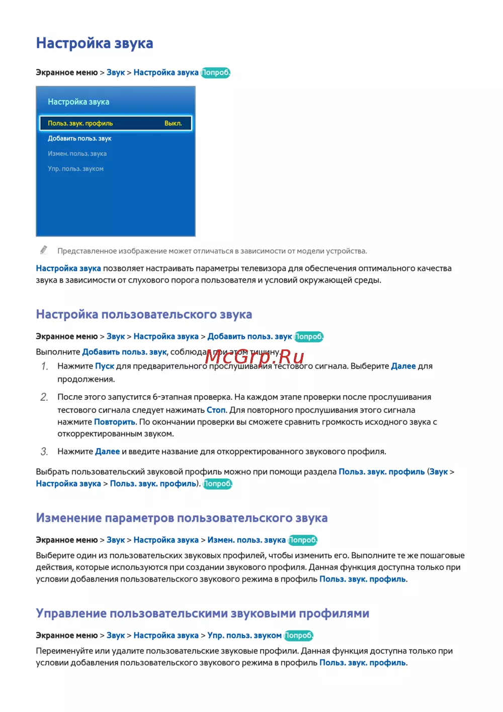 условии добавления пользовательского звукового режима в профиль Польз. звук. профиль.