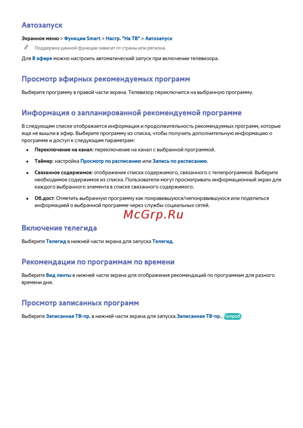 Настройте автозапуск телевизора и управляйте эфирными программами. Узнайте, как выбрать, записать и просмотреть рекомендуемые телепередачи.