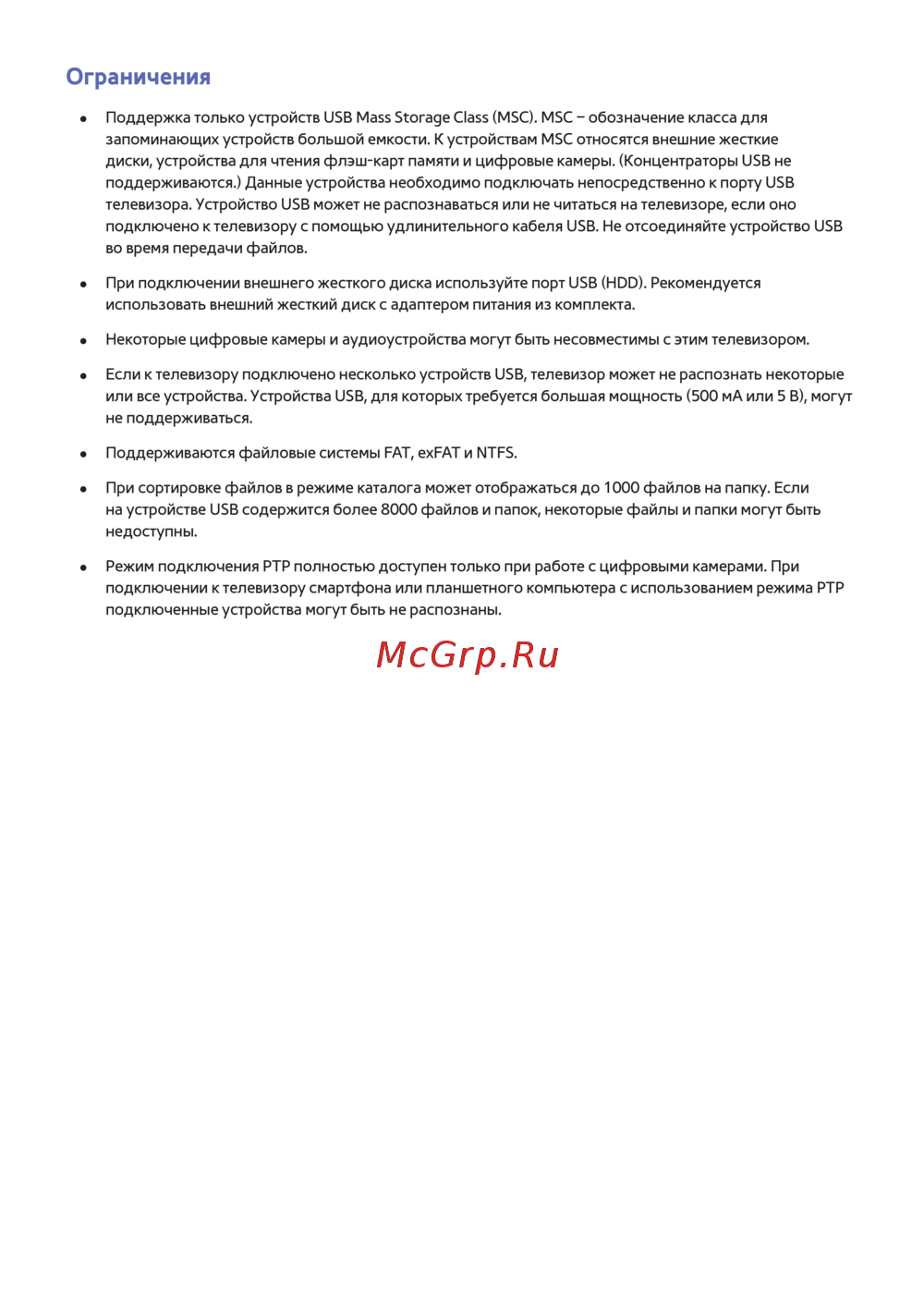 Samsung UE46F8000AT — ограничения подключения USB устройств к телевизору [146/202]