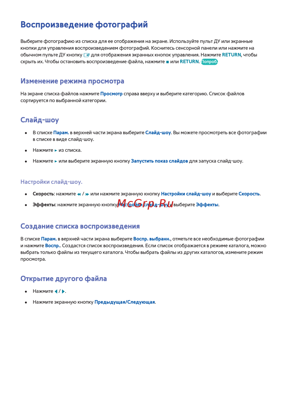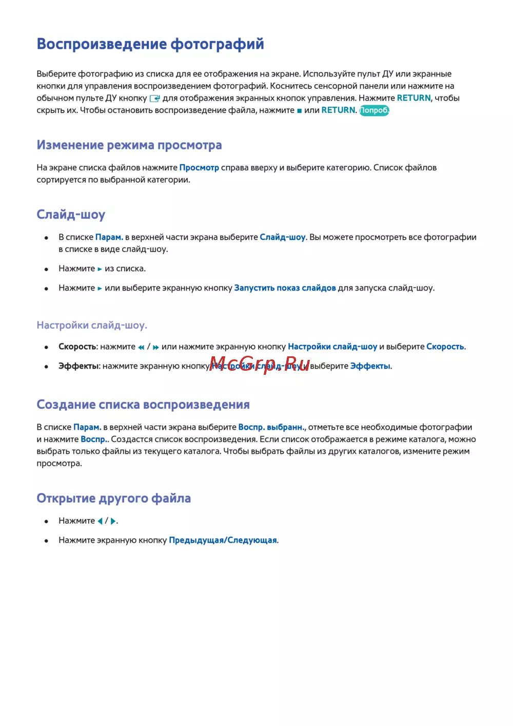Воспроизведение фотографий