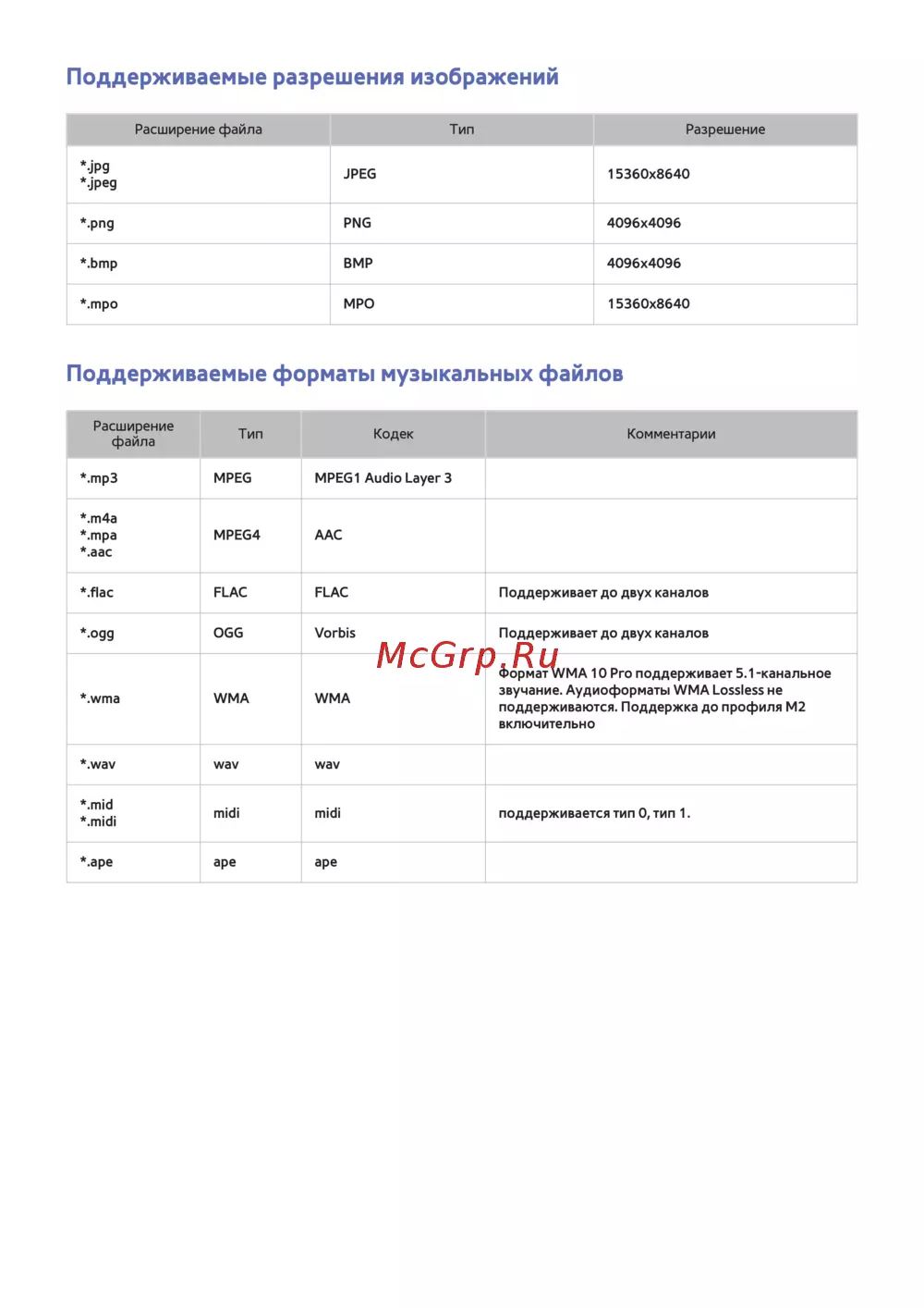 Узнайте о поддерживаемых разрешениях для изображений и форматах музыкальных файлов. Подробная информация о кодеках и максимальных разрешениях.