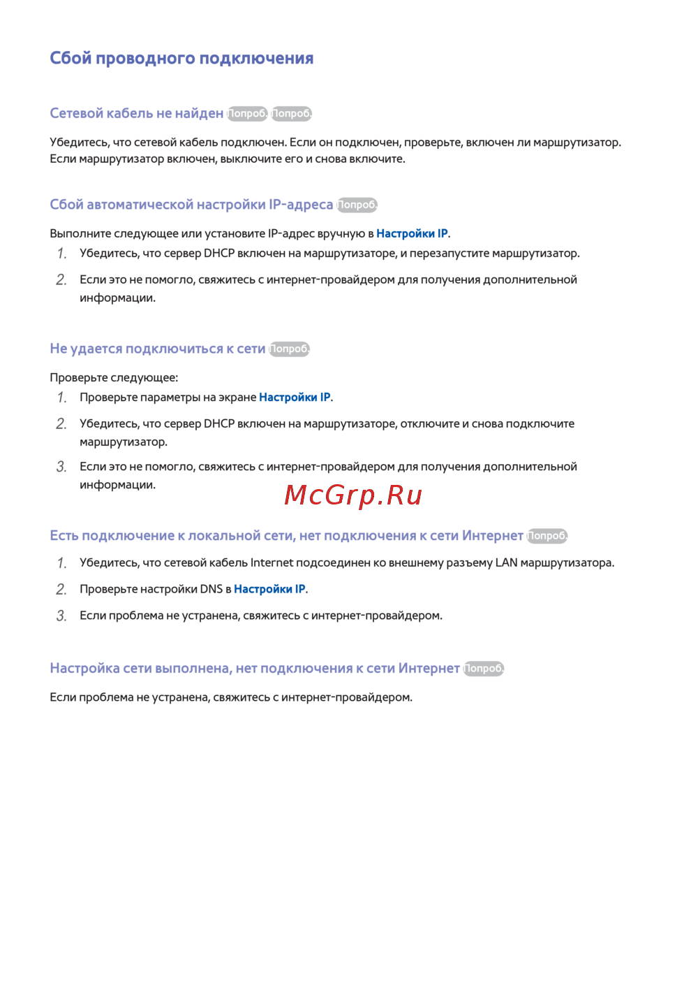 Сбой проводного подключения