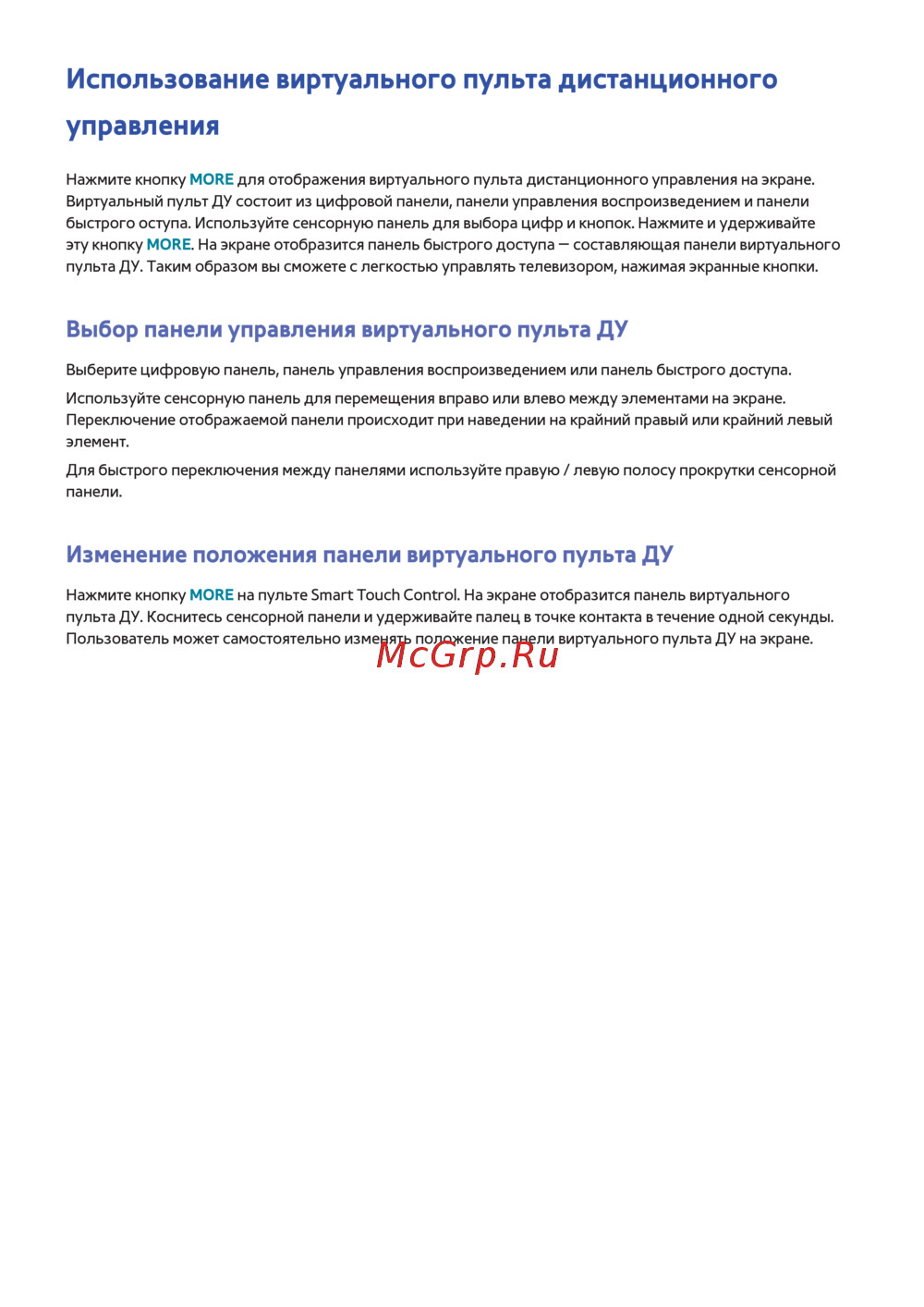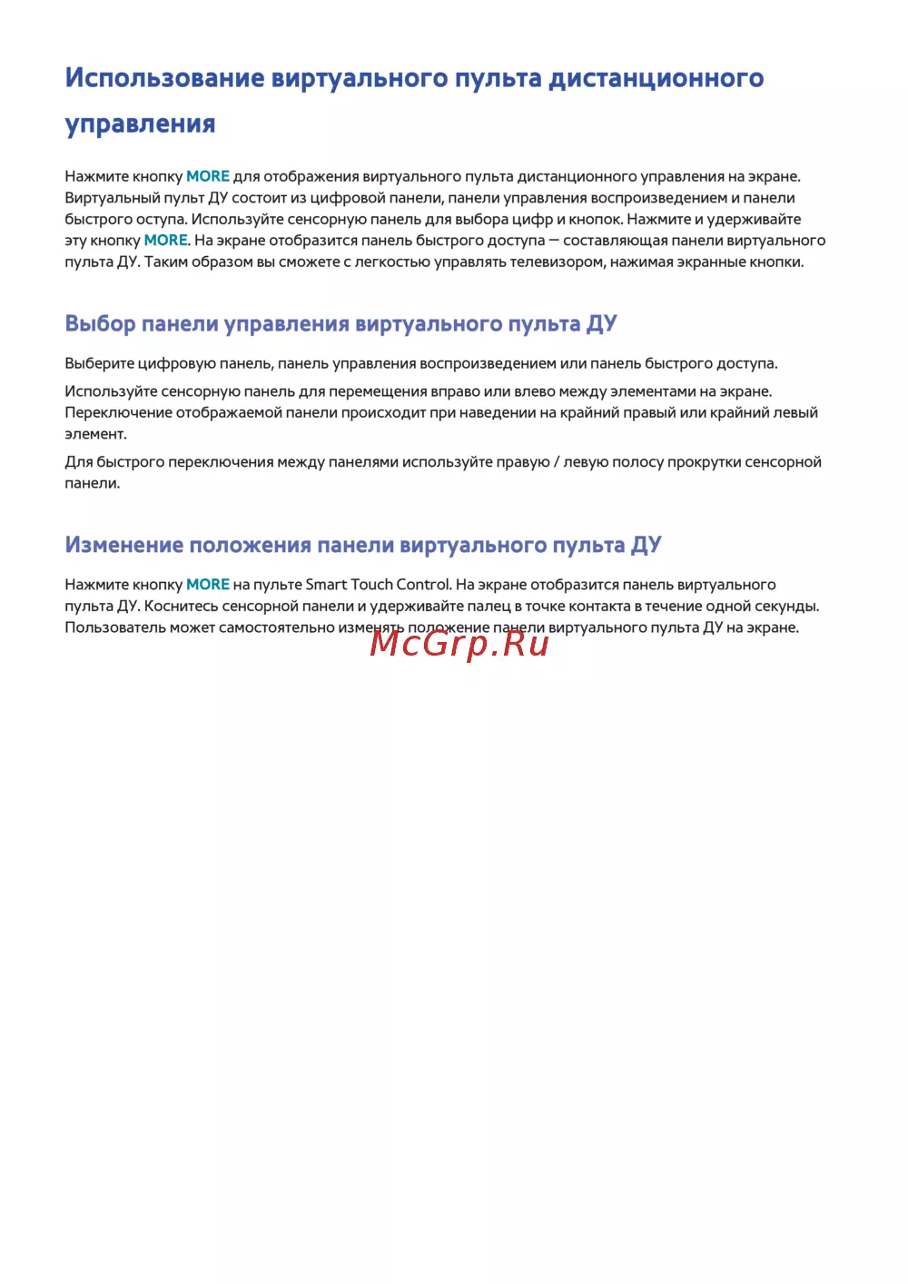 Нажмите кнопку MORE на пульте Smart Touch Control. На экране отобразится панель виртуального