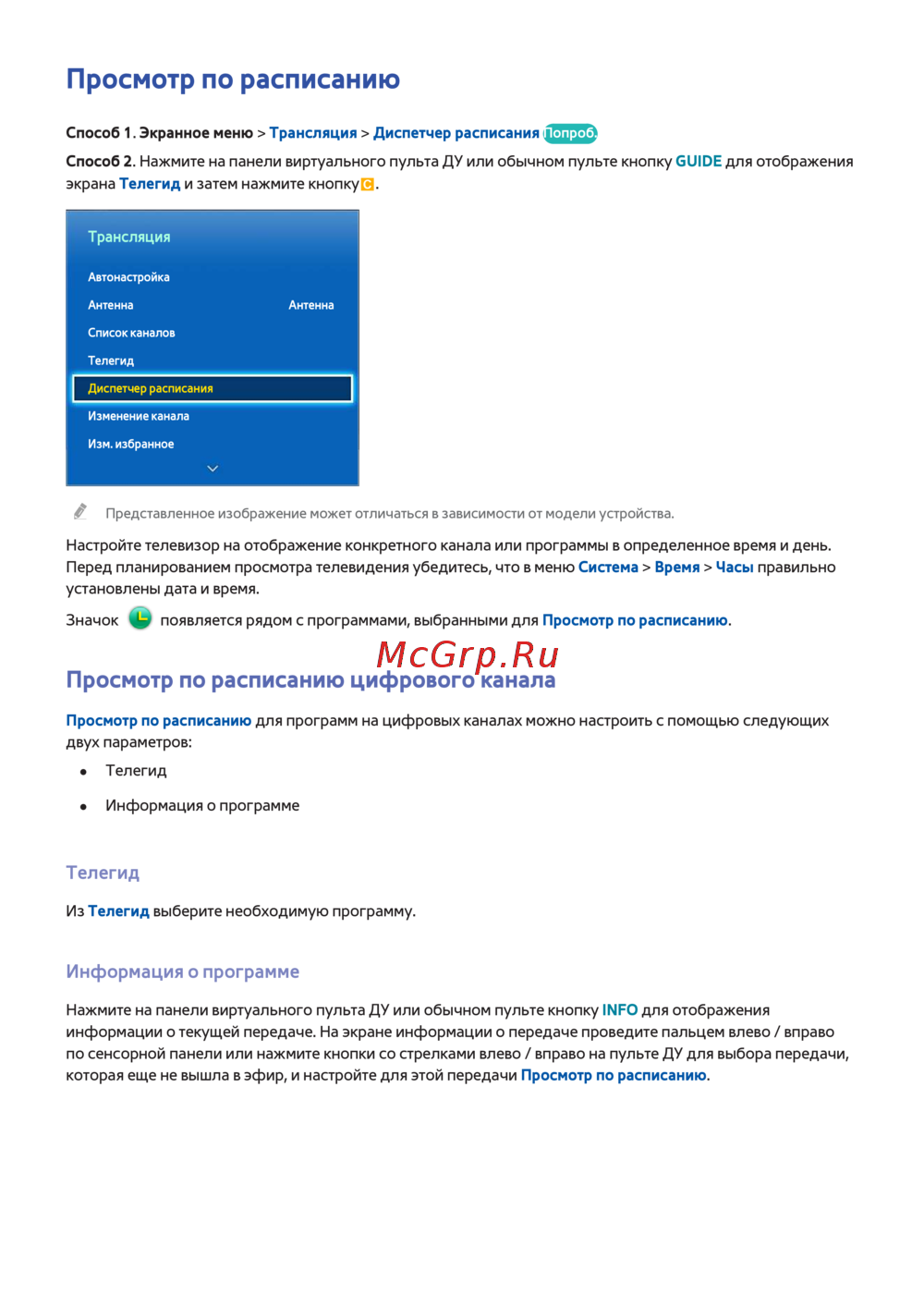 - Просмотр по расписанию p.4