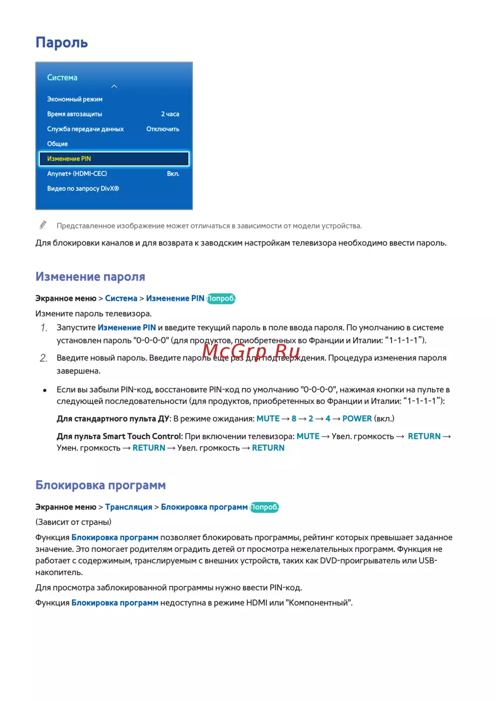 Узнайте, как изменить и восстановить PIN-код на телевизоре, а также заблокировать нежелательные программы для защиты детей от неподходящего контента.